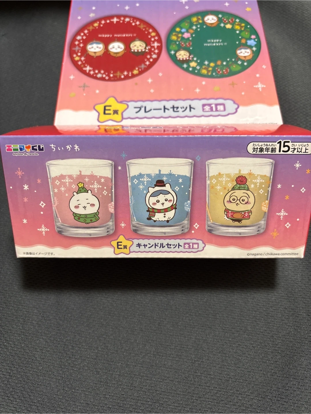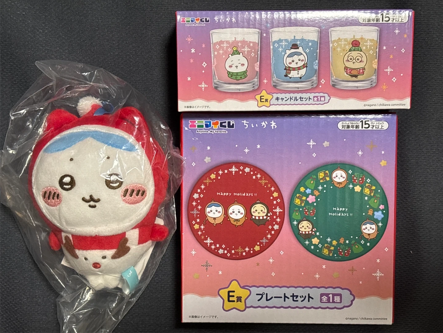去年のクリスマスエニマイくじの景品です。 ハチワレのぬいぐるみオーナメント、プレートセット、キャンドルセットです。 ・ぬいぐるみ1点 ・プレートセット1点 ・キャンドルセット1点 未使用未開封ですが、 自宅保管なので神経質な方はご遠慮下さい。