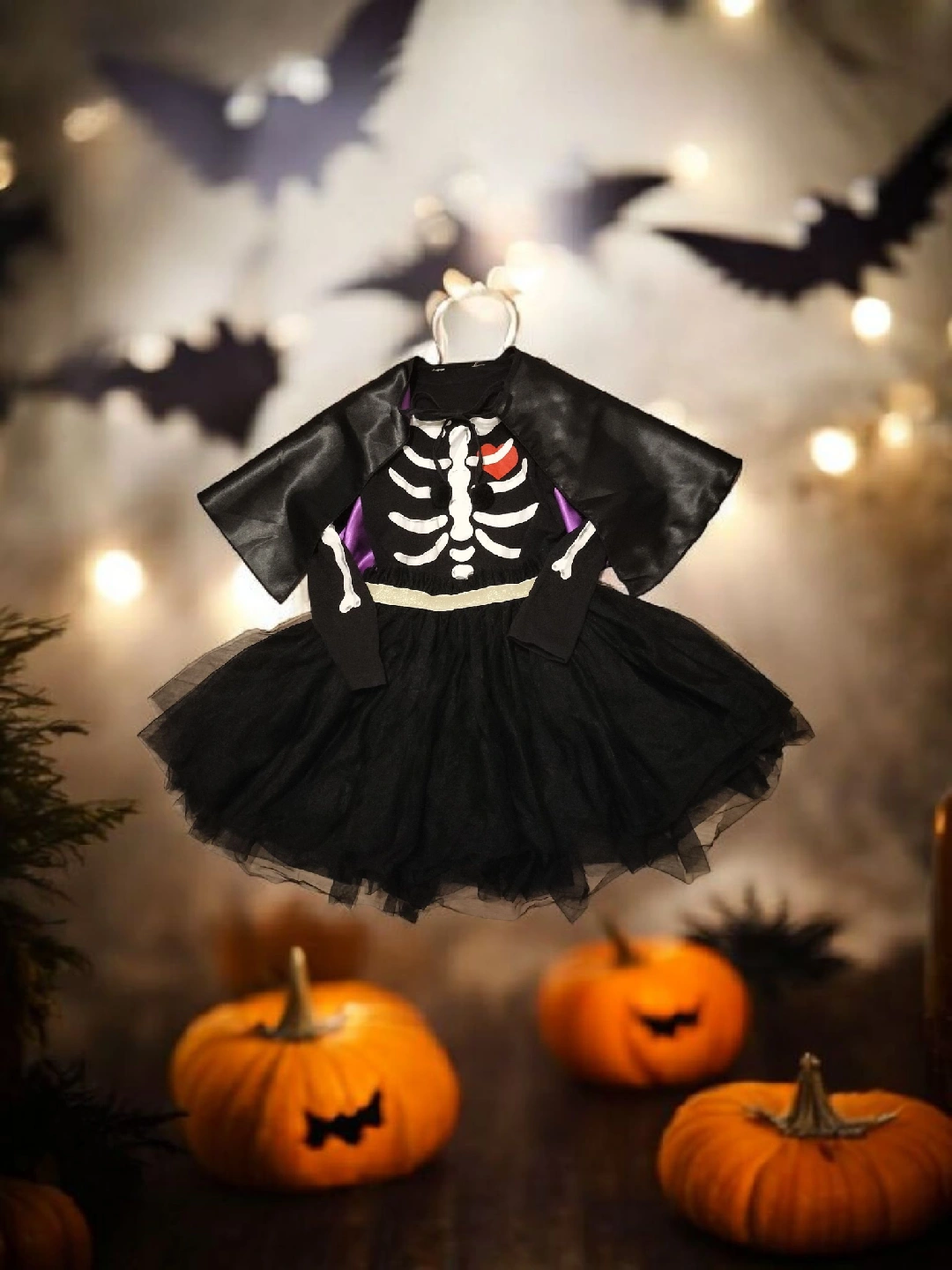 ハロウィンのコスチュームセットです👻 ・セット内容:マント、スケルトンロンT、ブラックチュールフリルスカート ・デザイン:スケルトン(骸骨)、デビルのマント ・サイズ:海外で購入して表記がないため不明ですが、おおよそ90〜110㌢✨ ・状態:使用感少なめ(プリント部分はヒビがありますが目立ちません) ・ハロウィンなどのイベント用 アメリカで購入しました。お洗濯や保管はしていましたのでご理解のある方のみよろしくお願いします。 ご不明点があればお気軽にご連絡ください🎃ハロウィンの衣装にぴったりです♡ 有料のものは田町駅〜蒲田駅〜池上線池上駅までの間の駅でもお取り引き可能です!
