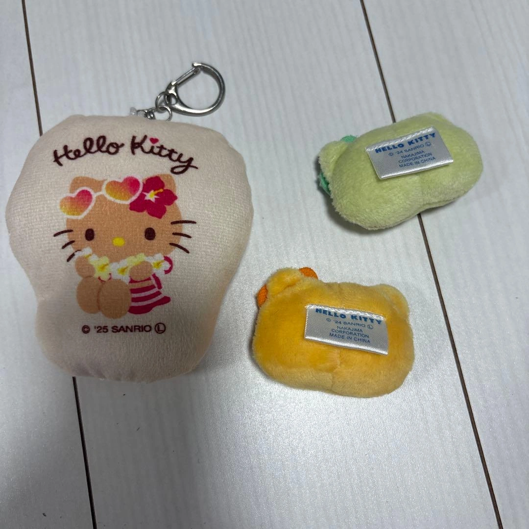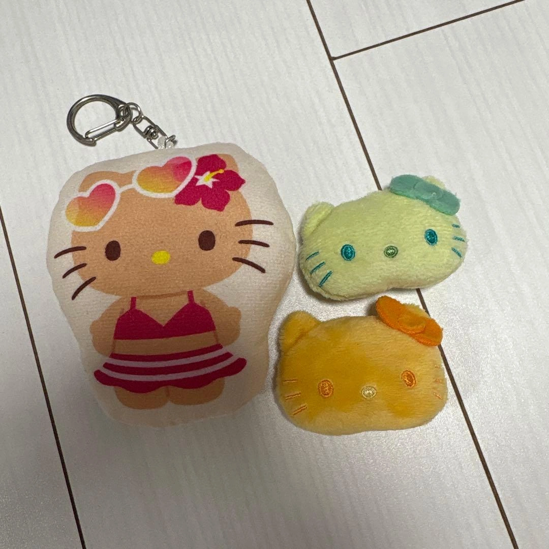 ハローキティの可愛いぬいぐるみセットです。キーホルダー付きで持ち運びに便利です。 - キャラクター: ハローキティ - サイズ: 約10cm - 色: ピンク, 水色, オレンジ - 付属品: キーホルダー付き ご覧いただきありがとうございます。 ご希望の方はお気軽にご連絡ください。