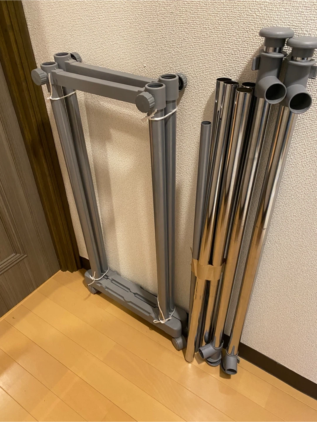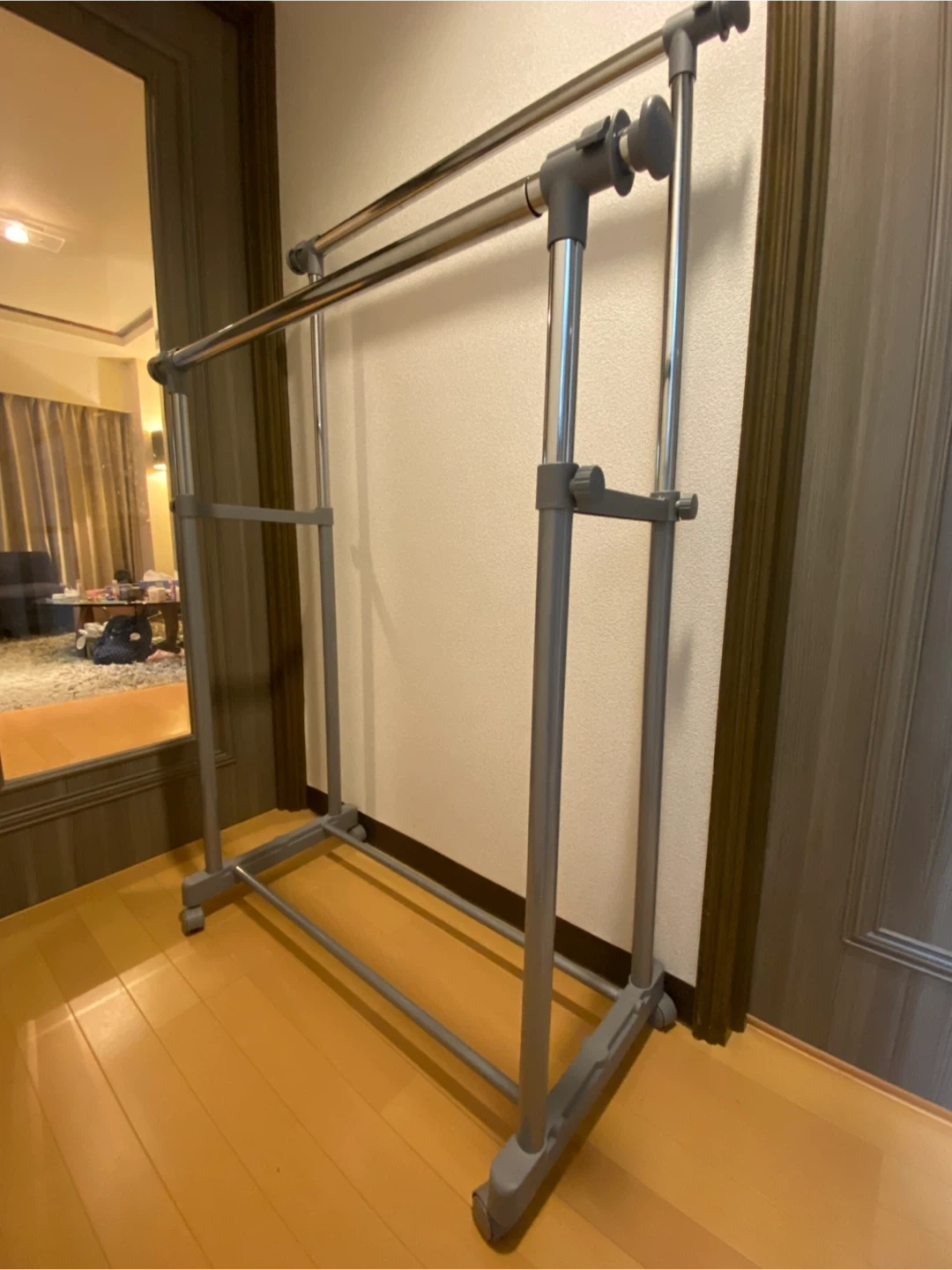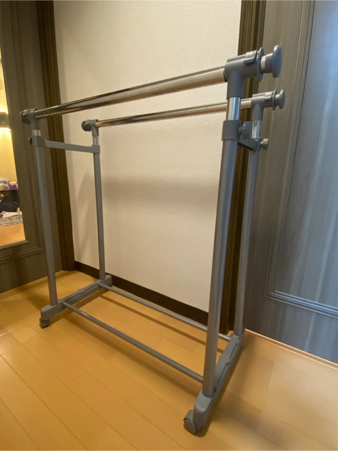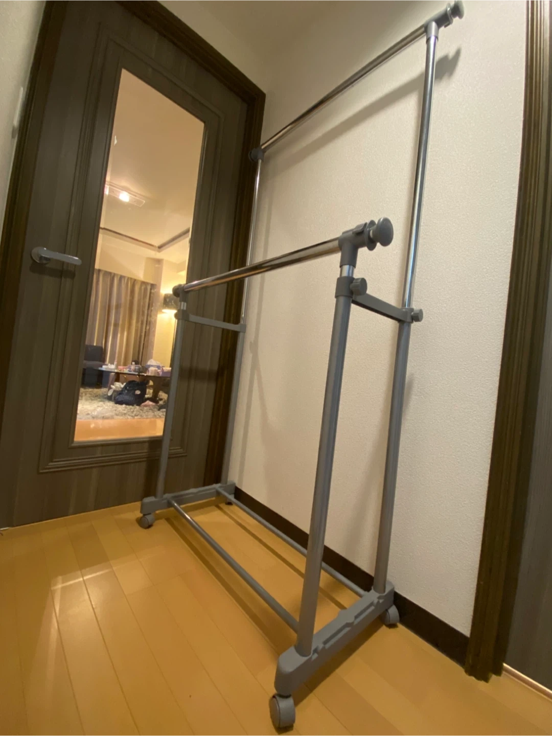 グレーのハンガーラックです ・色:グレー ・サイズ:高さ約90〜170cm、横幅約80cm、奥行約42.5cm ・キャスター付き ・全体的にきれい 解体して写真4枚目の形となります。 お近くでしたら、車でお持ちする事も可能です。 ご不明点があればお気軽にご連絡ください