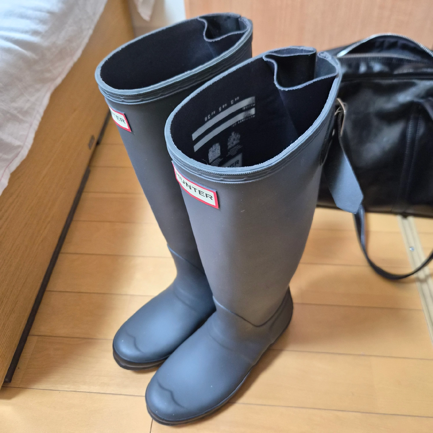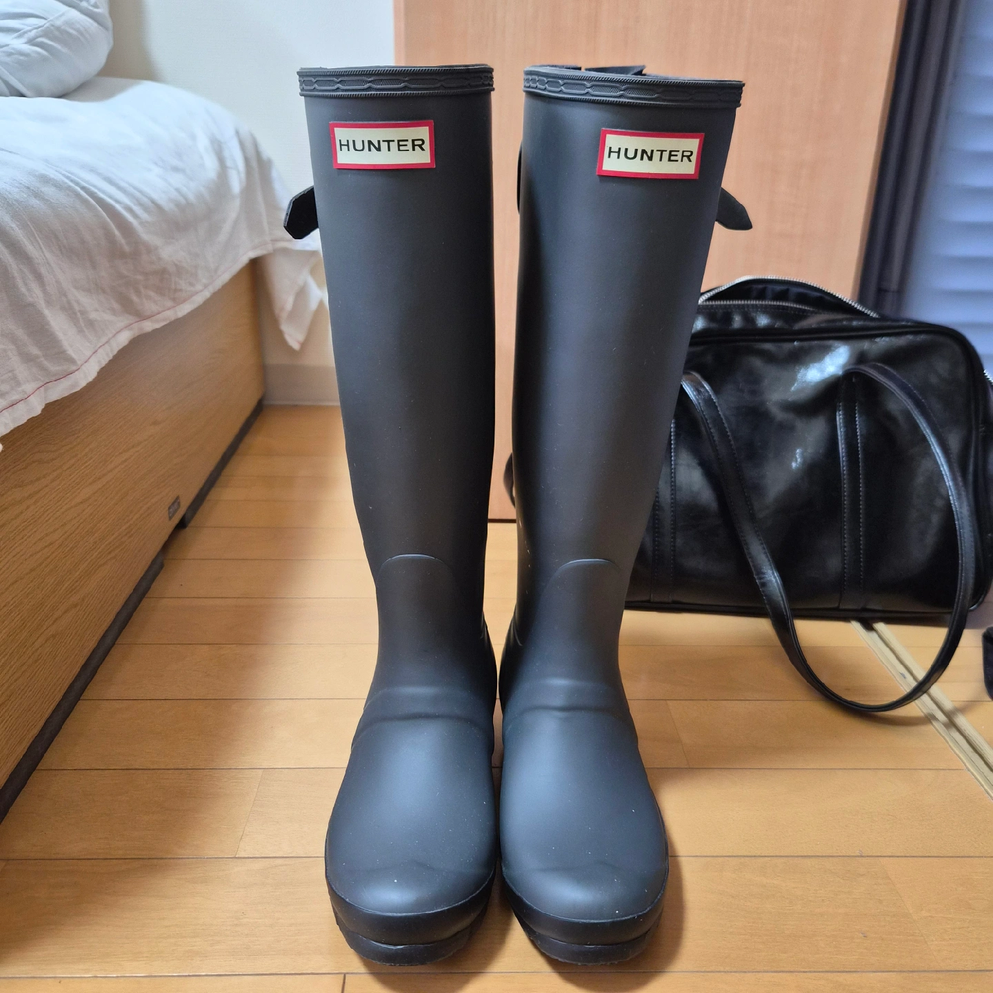 ハンターのレインブーツ「オリジナルバックアジャストトール」です。 カナダで購入しました。 ・カラー:ブラック ・サイズ:23~23.5(日本サイズ) ・5回ぐらい着用 都営新宿線【明大前駅~神保町駅】で可能です。 中古品であることご了承ください