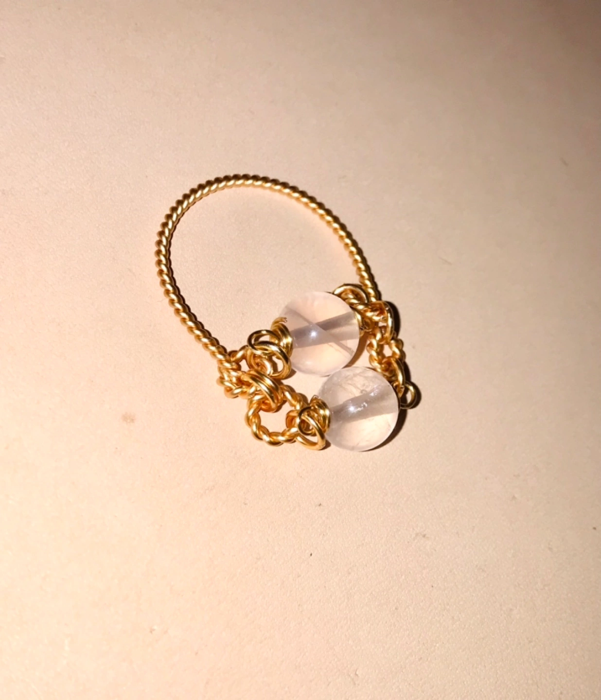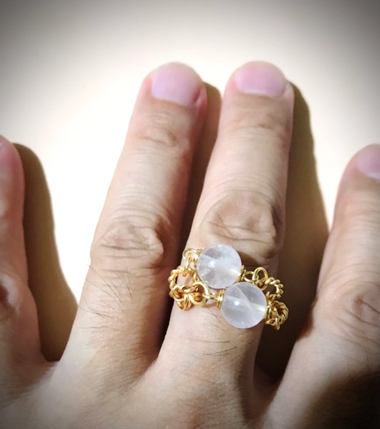 NEW DESIGN ハンドメイドのWターコイズリング8mm〜2本縒りK18GP