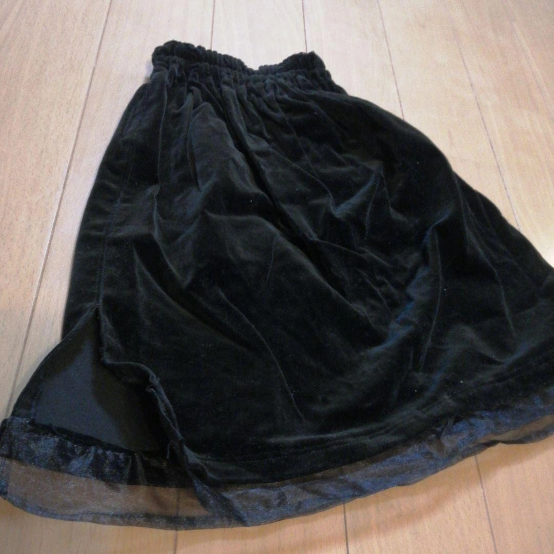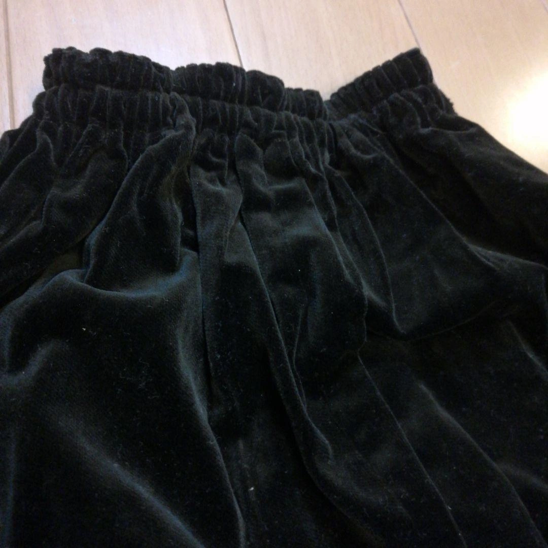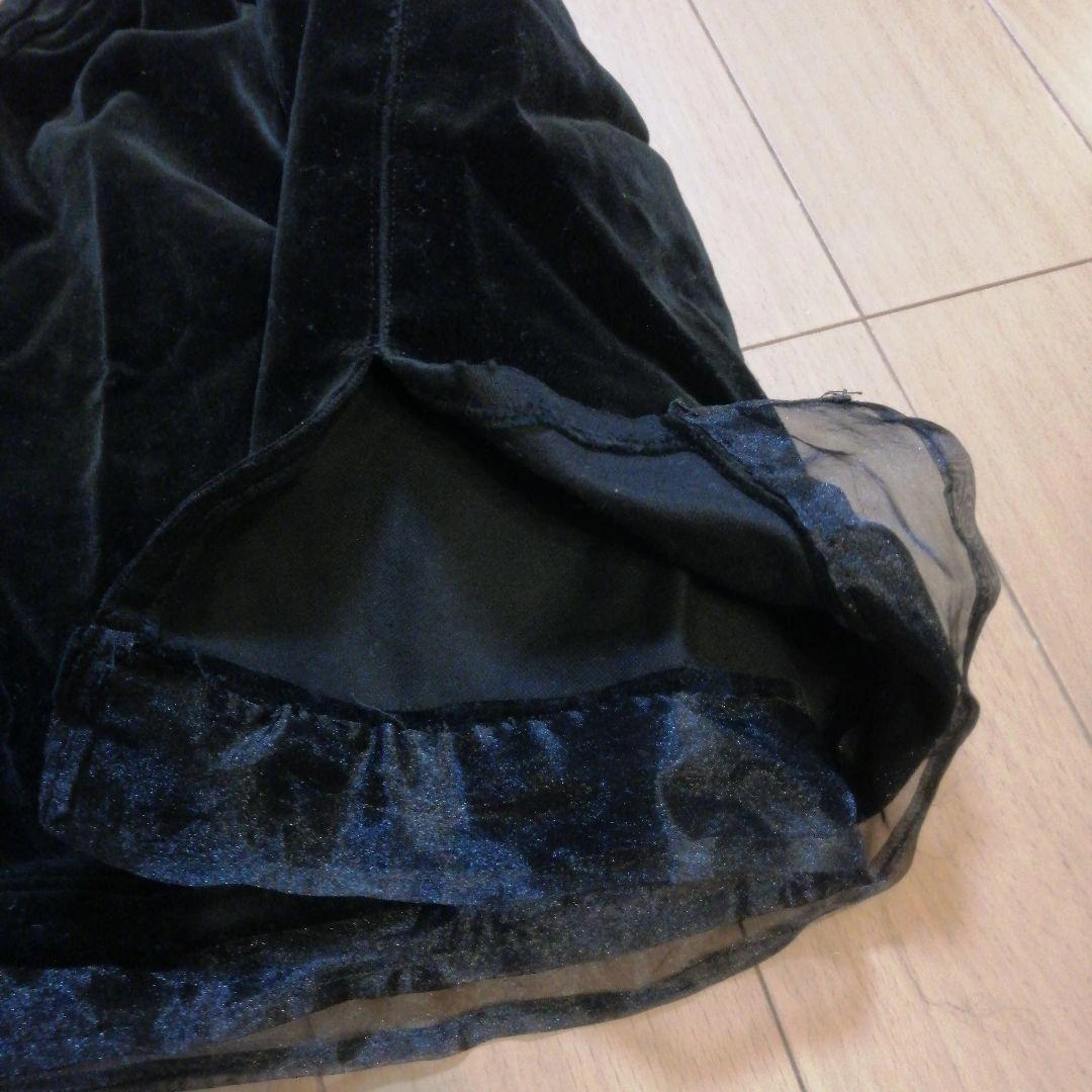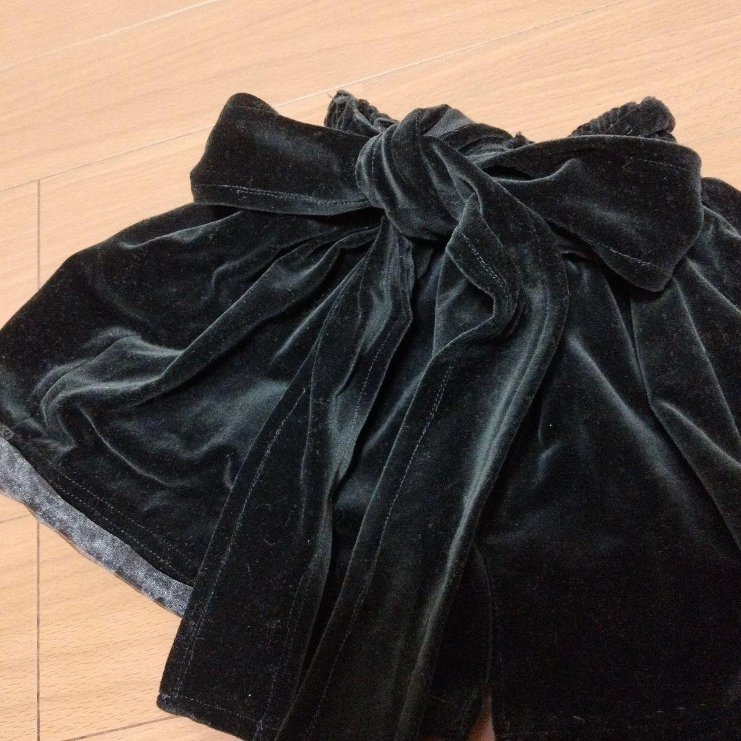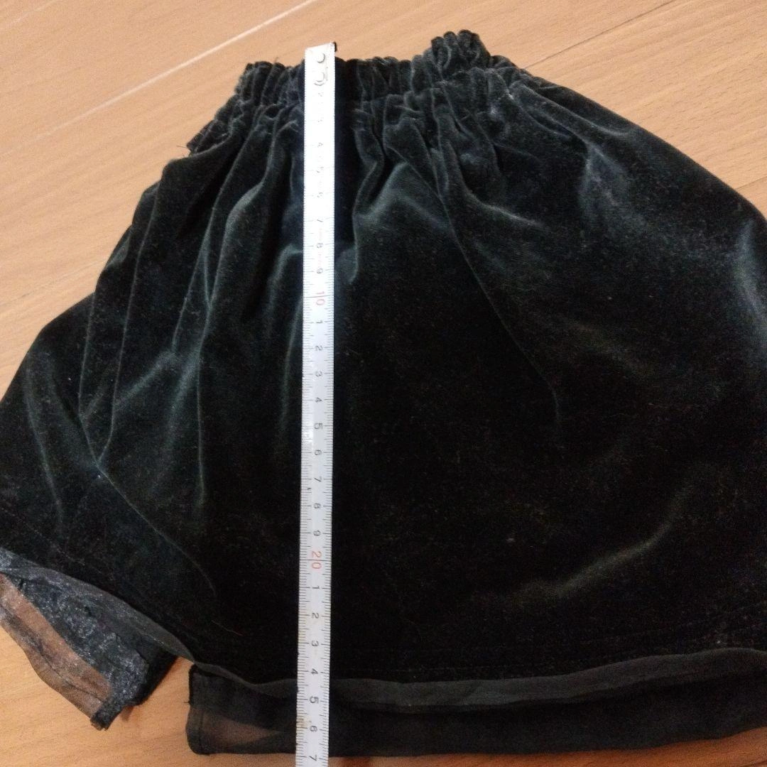 ハンドメイドのスカートです。ベロア素材に黒のレースフレアスカートです(#^^#)ウエストはゴムなのでお腹周りの調節が可能です。バックに長めの紐がついていて、大きなリボンに結ぶことができます! クローゼット保管していました。使用は1回のみです。比較的きれいな状態ですが、紐に一箇所だけ切れ目が入ってしまっています。リボン結びにしてしまえば結び目に入ってしまうのでわかりません。 ウエスト...20cm ヒップ...33cm スカート丈...27cm