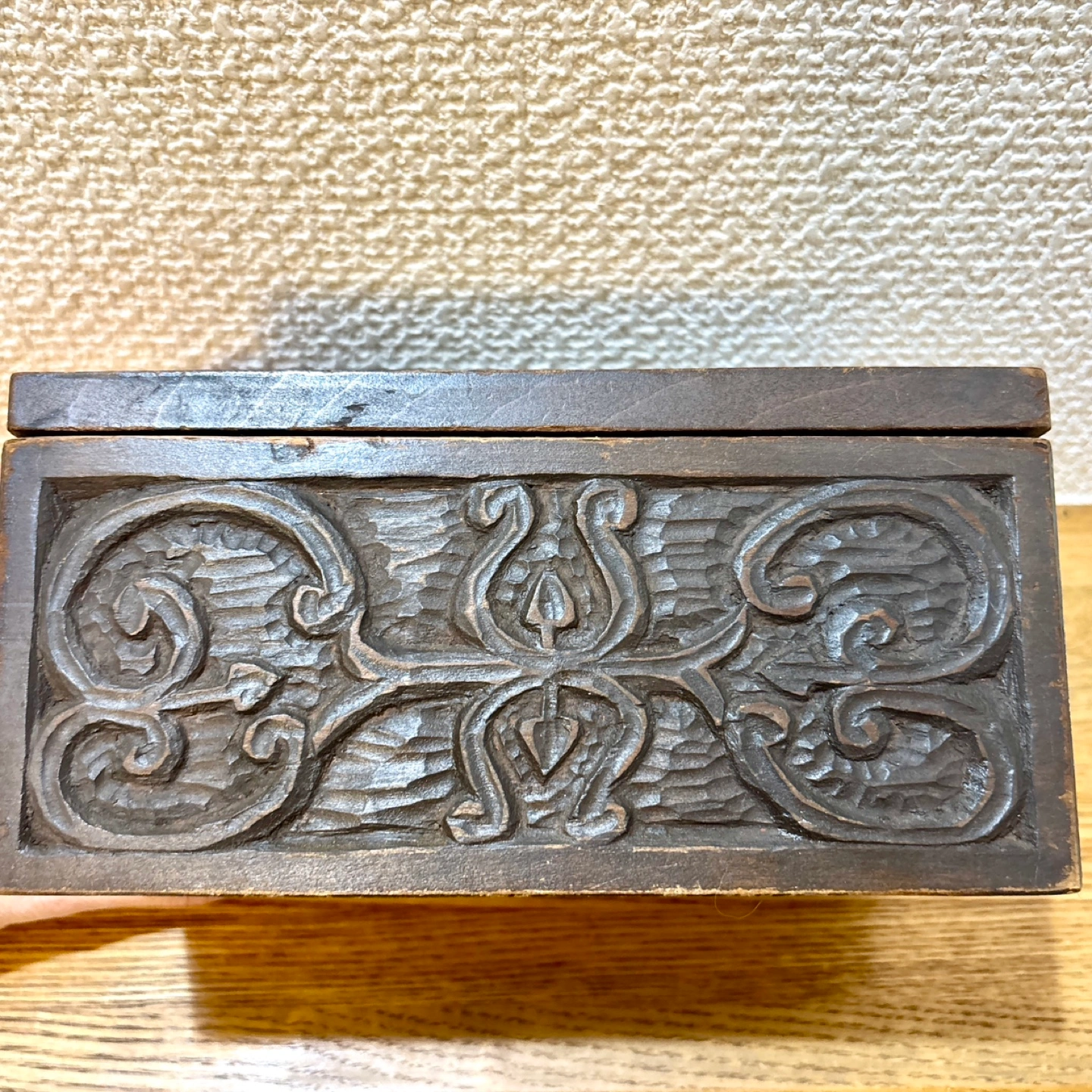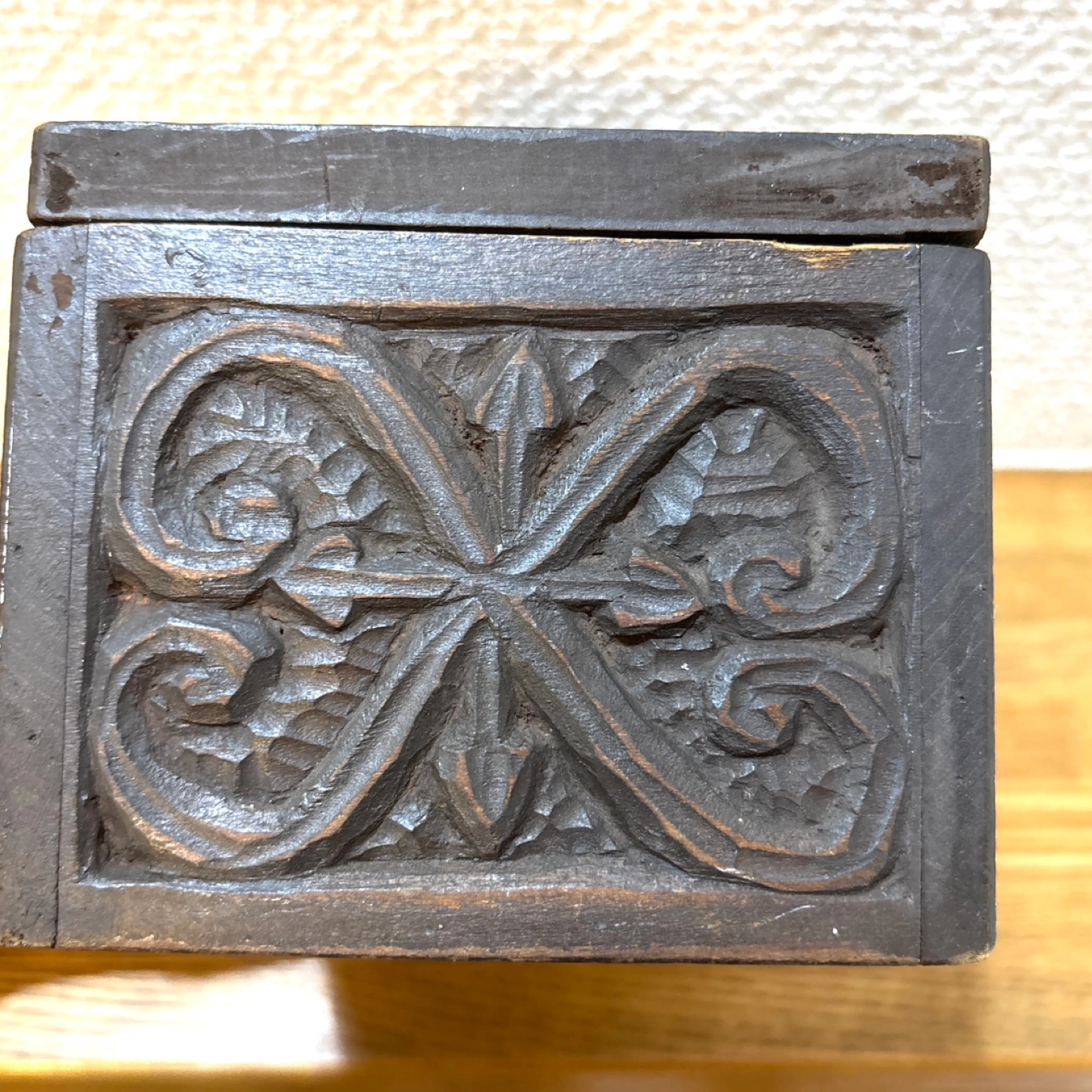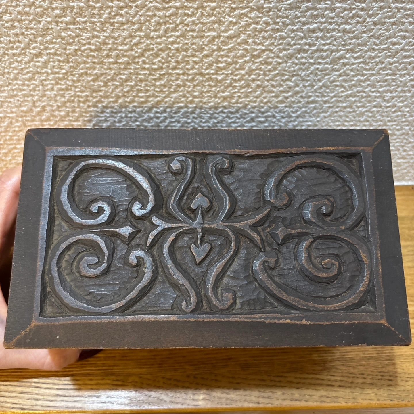ご覧頂きましてありがとうございます! 自宅保管の長いハンドメイドの木彫木箱です。 塗装が少しはげている箇所が見られます。 ハンドメイドですので、完璧なものをお求め方向きではありません。 このような類をあじがあると思って頂ける方がいらっしゃいましたらよろしくお願い致します。 ●サイズ(蓋をつけた状態で) ✴︎高さ 約8.2㎝ ✴︎縦 約10㎝ ✴︎横 約17㎝ ✴︎重さ 約270g キャンセル、返品、商品お受け取り後のクレームなどはお受け出来ませんので、ご了承頂けるようお願い致します。 種別···インテリア 種別···生活雑貨 #昭和レトロ #木彫り #彫刻 #木箱 #小物入れ #木製 #手作り #ハンドメイド