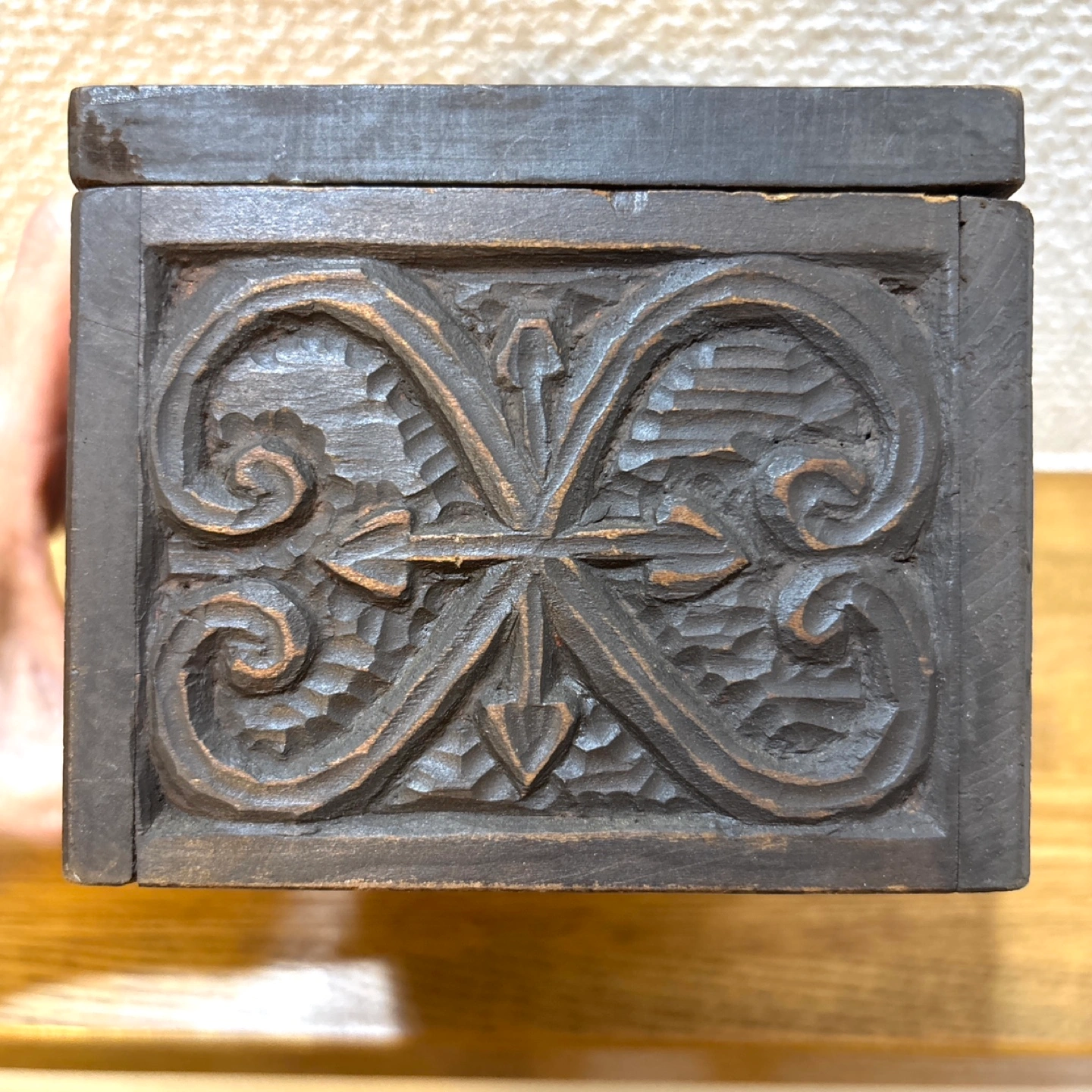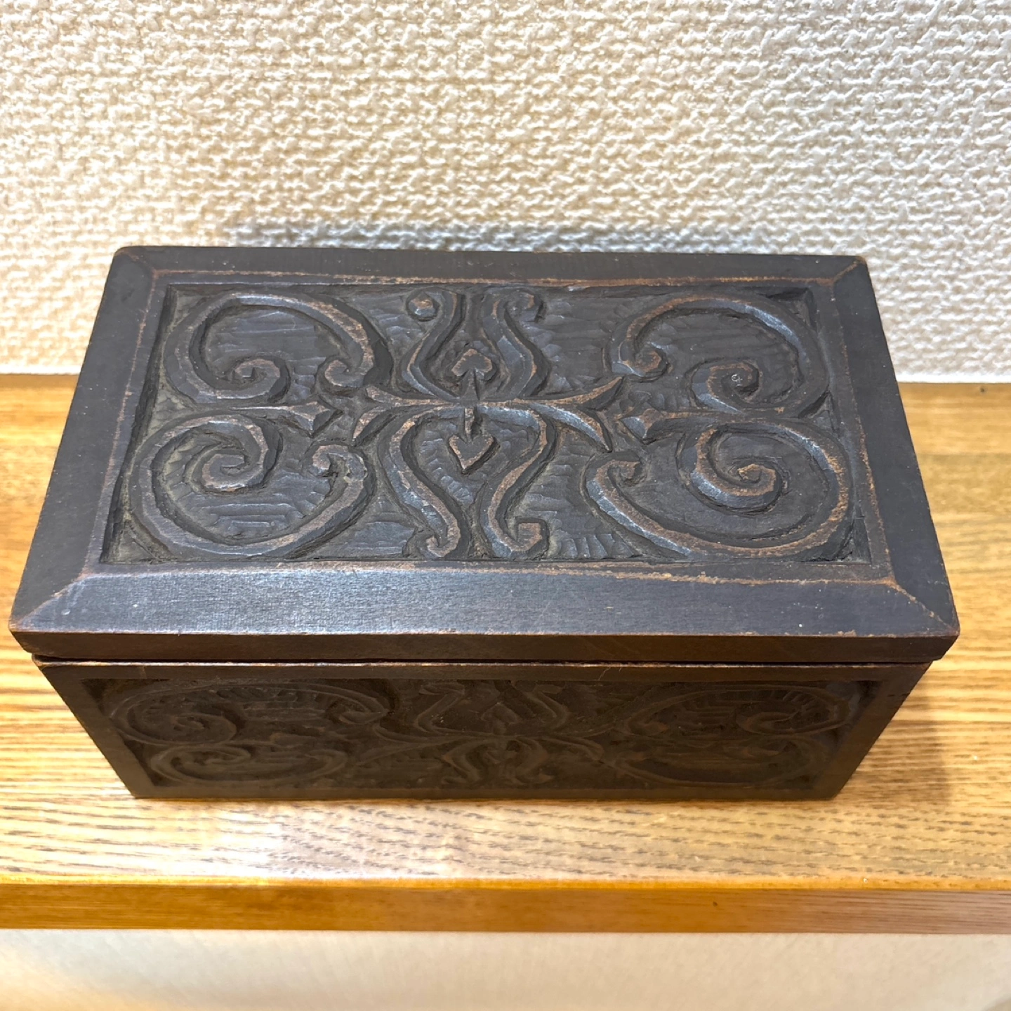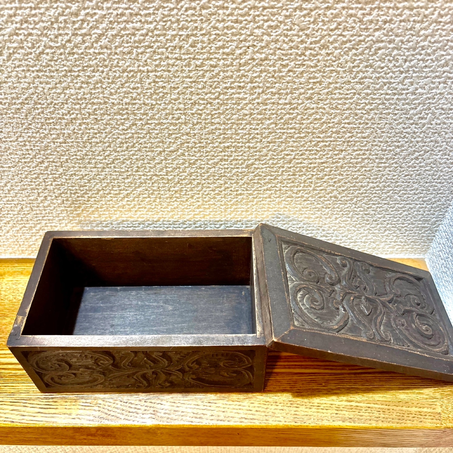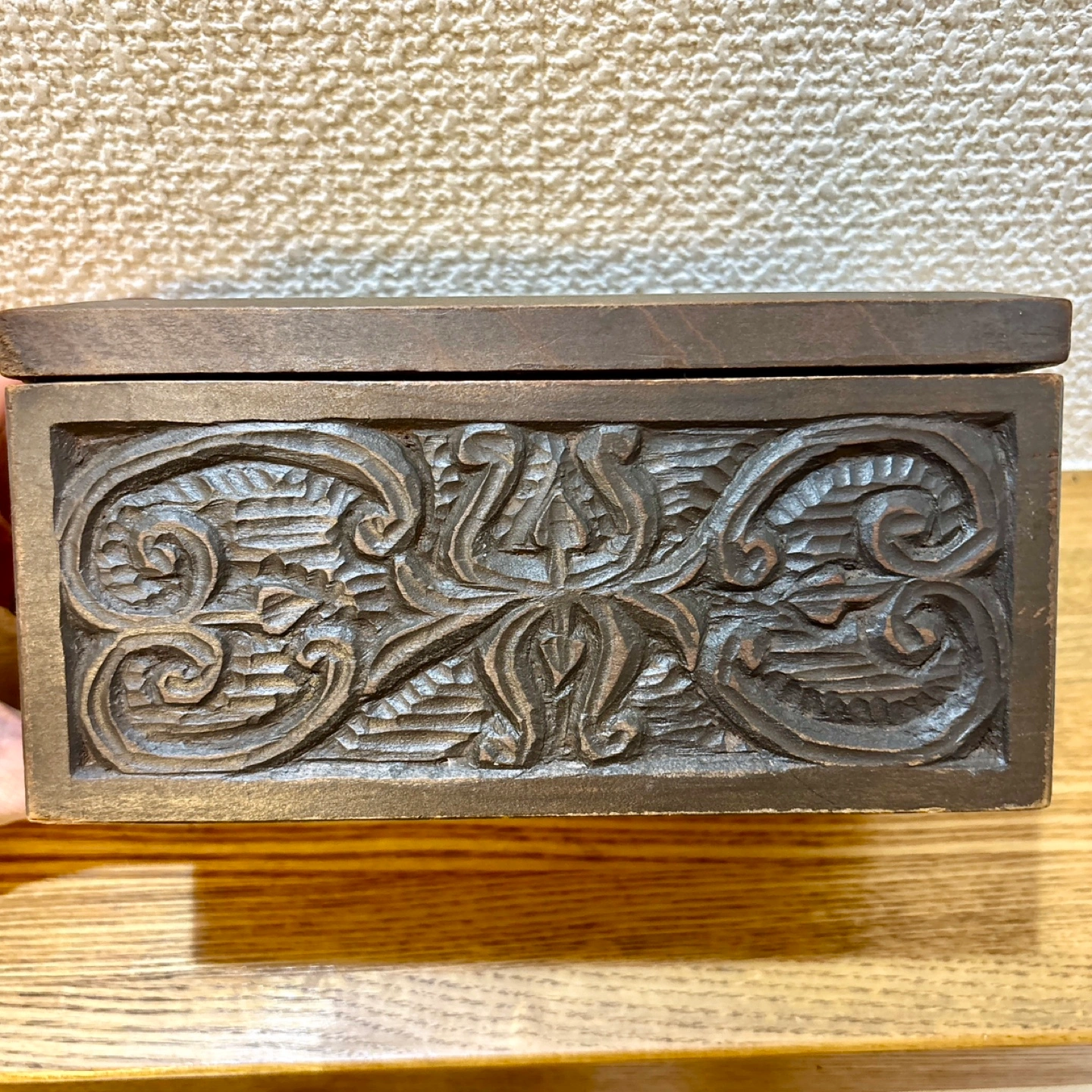 ご覧頂きましてありがとうございます! 自宅保管の長いハンドメイドの木彫木箱です。 塗装が少しはげている箇所が見られます。 ハンドメイドですので、完璧なものをお求め方向きではありません。 このような類をあじがあると思って頂ける方がいらっしゃいましたらよろしくお願い致します。 ●サイズ(蓋をつけた状態で) ✴︎高さ 約8.2㎝ ✴︎縦 約10㎝ ✴︎横 約17㎝ ✴︎重さ 約270g キャンセル、返品、商品お受け取り後のクレームなどはお受け出来ませんので、ご了承頂けるようお願い致します。 種別···インテリア 種別···生活雑貨 #昭和レトロ #木彫り #彫刻 #木箱 #小物入れ #木製 #手作り #ハンドメイド