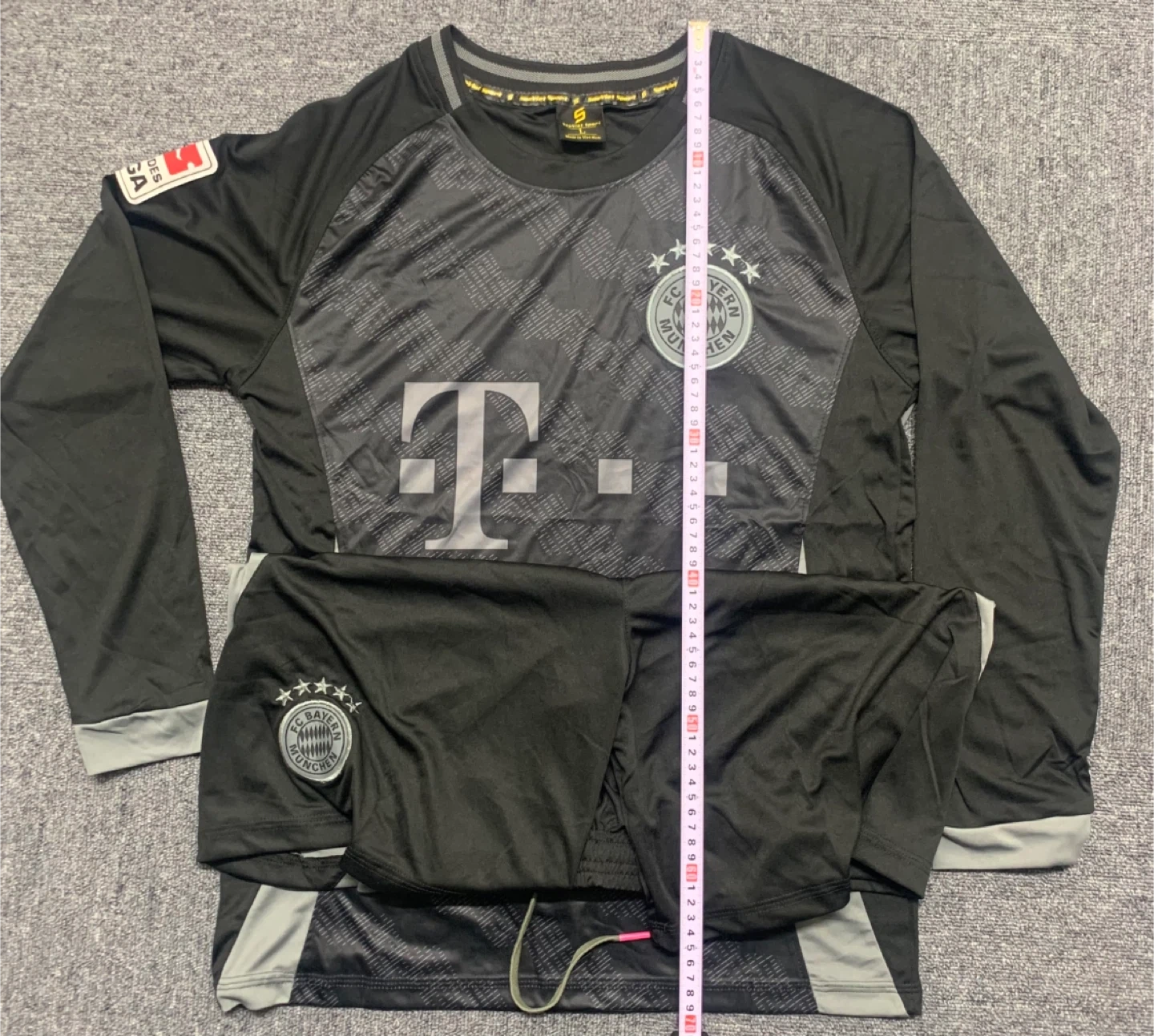 バイエルン・ミュンヘンのサッカーウェアセットです ・色:黒、グレー ・サイズ:Lサイズです。大体は上着の丈約70cm、袖丈約50cm、ズボンの丈約69cm ・ブンデスリーガのロゴあり 中古品であることご了承ください よろしくお願い致します。