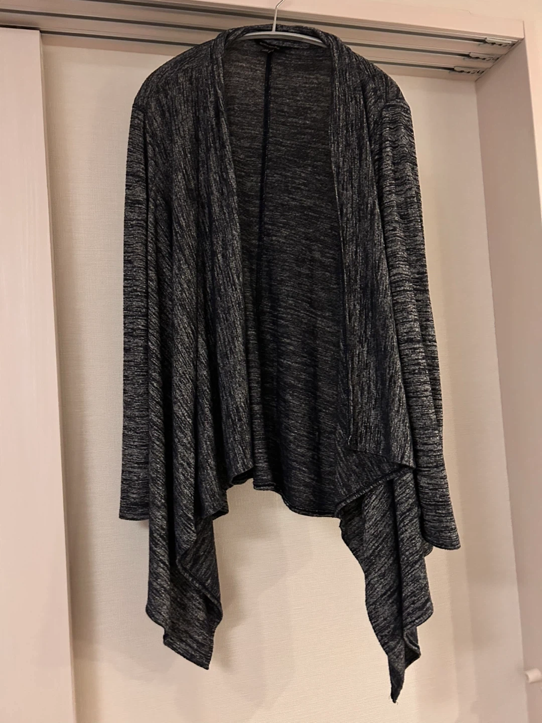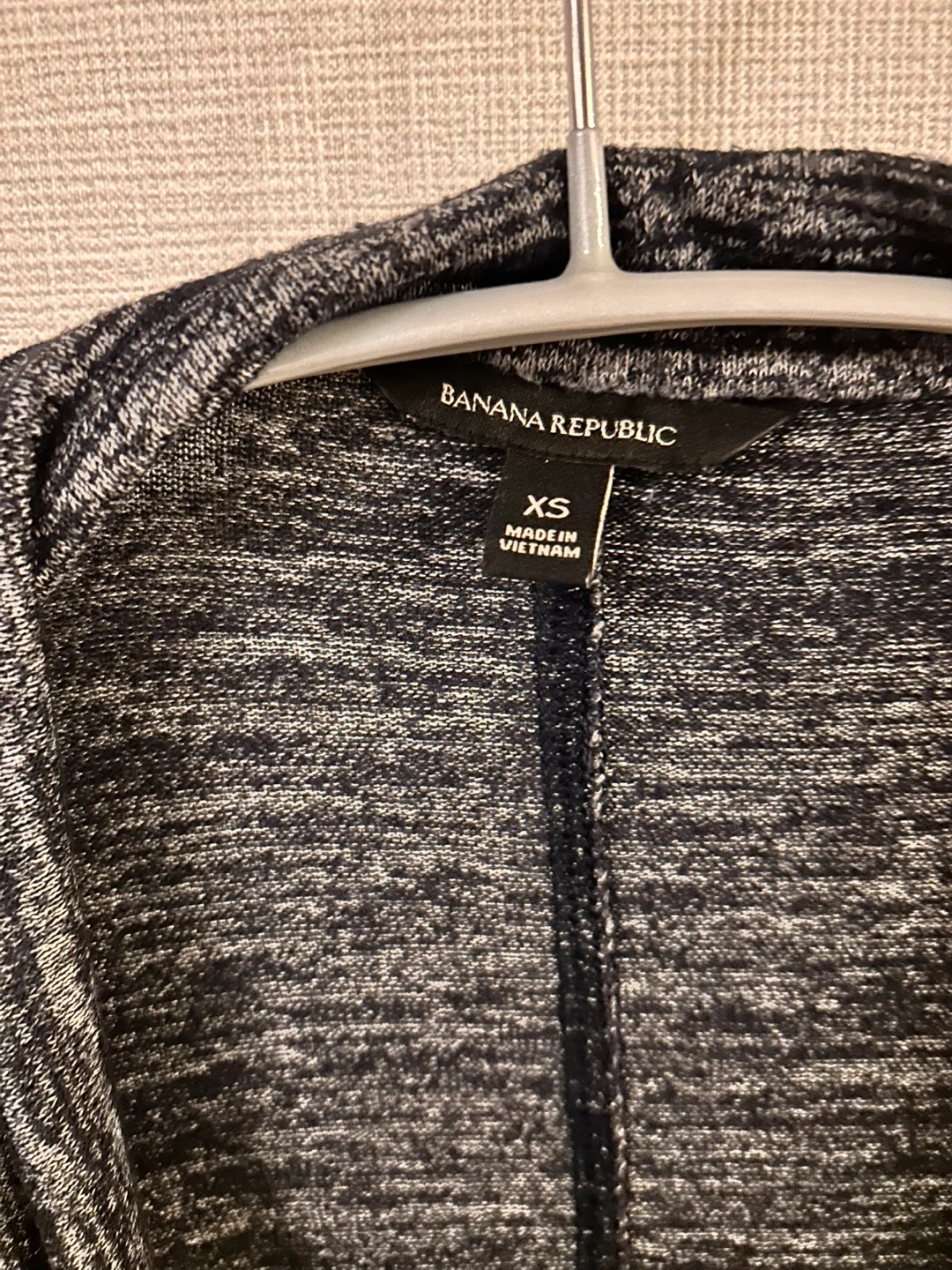 バナナリパブリックのカーディガンです。 ・ブランド:バナナリパブリック ・サイズ:XS ・色:グレーと黒の混ざった色合い ・状態:使用感は少なめ サイズはXSですが、伸縮性があり、全体的にゆとりのある作りです。 普段のサイズに関わらず着やすいデザインだと思います。 中古品であることをご了承ください。