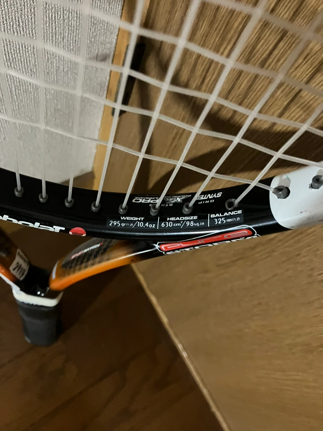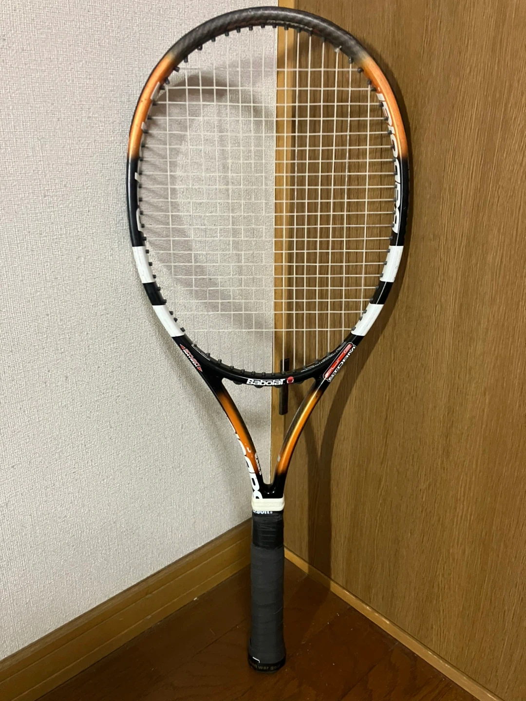 バボラの硬式テニスラケットです ・ブランド:バボラ ・ヘッドサイズ:98 sq.in (630cm²) ・バランス:325mm ・重量:295g ・色:オレンジ、黒、白 大人気のバボラテニスラケットです。 振り抜けの良い、持ちおもりのしないラケットで、ビギナーの方から中級者まで充分満足していただける1本だと思います。 ガット縦横ともに50ポン ドに張り替え、グリップテープを巻き替えて1度だけ使用しました。 参考までにガットの料金とガット張り替え工賃を合わせて5000円でした。 膝を痛めてしばらくテニスから遠ざかるとになったので出品します。 自宅近辺まで取りに来てくださる方限定でお願いいたします。 事前にご連絡をいただければ、曜日を問わず11時から18時の間お引き渡しができます。
