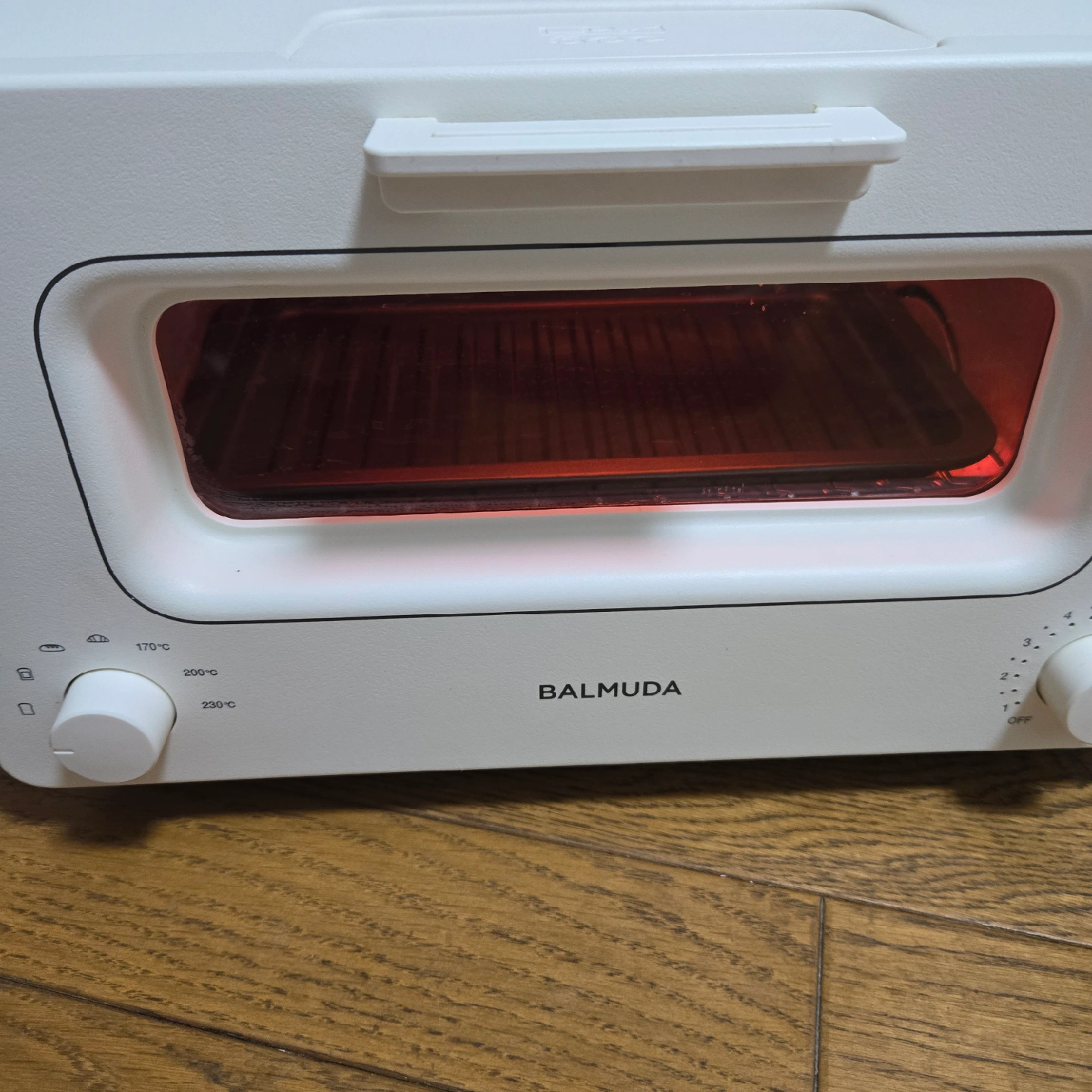 箱などはなく、バルミューダのトースターのみになります。 焼きプレートはおまけに譲ります。 【情報】 ブランド:バルミューダ 【状態】 外面は綺麗ですが、 パンくずトレイに汚れがあります。 BALMUDA K01E-WSホワイト 2017年製 本体寸法幅357×奥行321×高さ209mm 庫内寸法幅274×奥行204×高さ178mm 重量:約4.3kg モード:トースト/チーズトースト/フランスパン/クロワッサン/170℃/200℃/230℃ タイマー:1~15分 ワット数 1300 W 中古品であるということをご理解いただきご購入をお願いします。 ●返品X 値引き不可