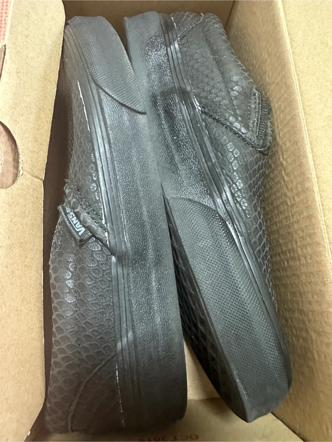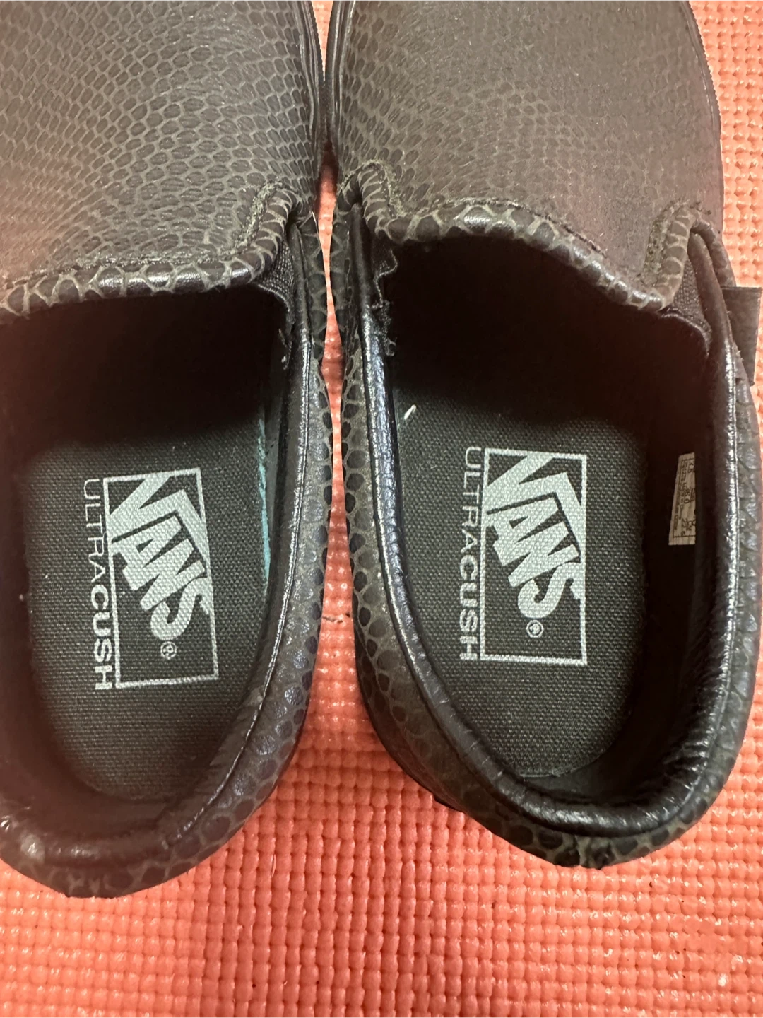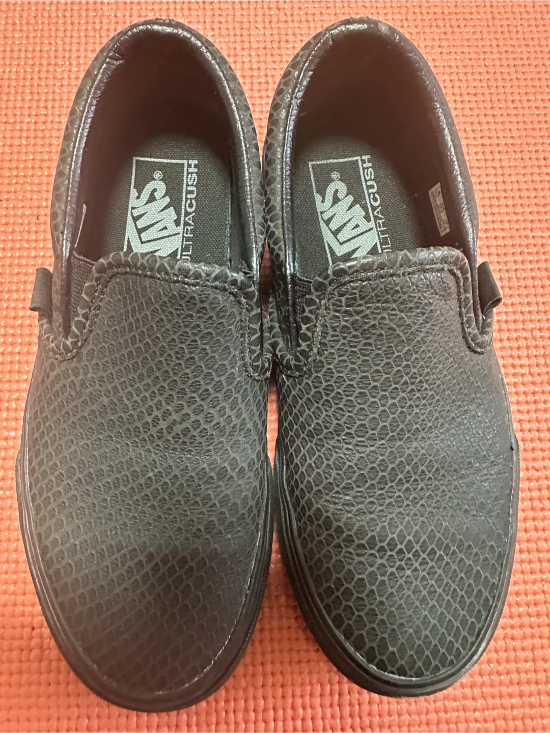 バンズのスリッポンです。 ・カラー:ブラック ・デザイン:蛇柄 ・VANSのロゴ入り ・サイズ22.5センチ 新しくはありませんが 沢山は履いていません。 小学生や足の小さい方へ ※あくまでも中古なのでご 理解してくださる方 のみご購入をお願いします。 ※スムーズなお取引きを希望です。 どうぞご理解の程をよろしく お願い致します。 ご質問はお気軽にメッセージを お願い致します。 平日17:00以降に昭島のOK スーパーで引き渡し出来ると 助かります。