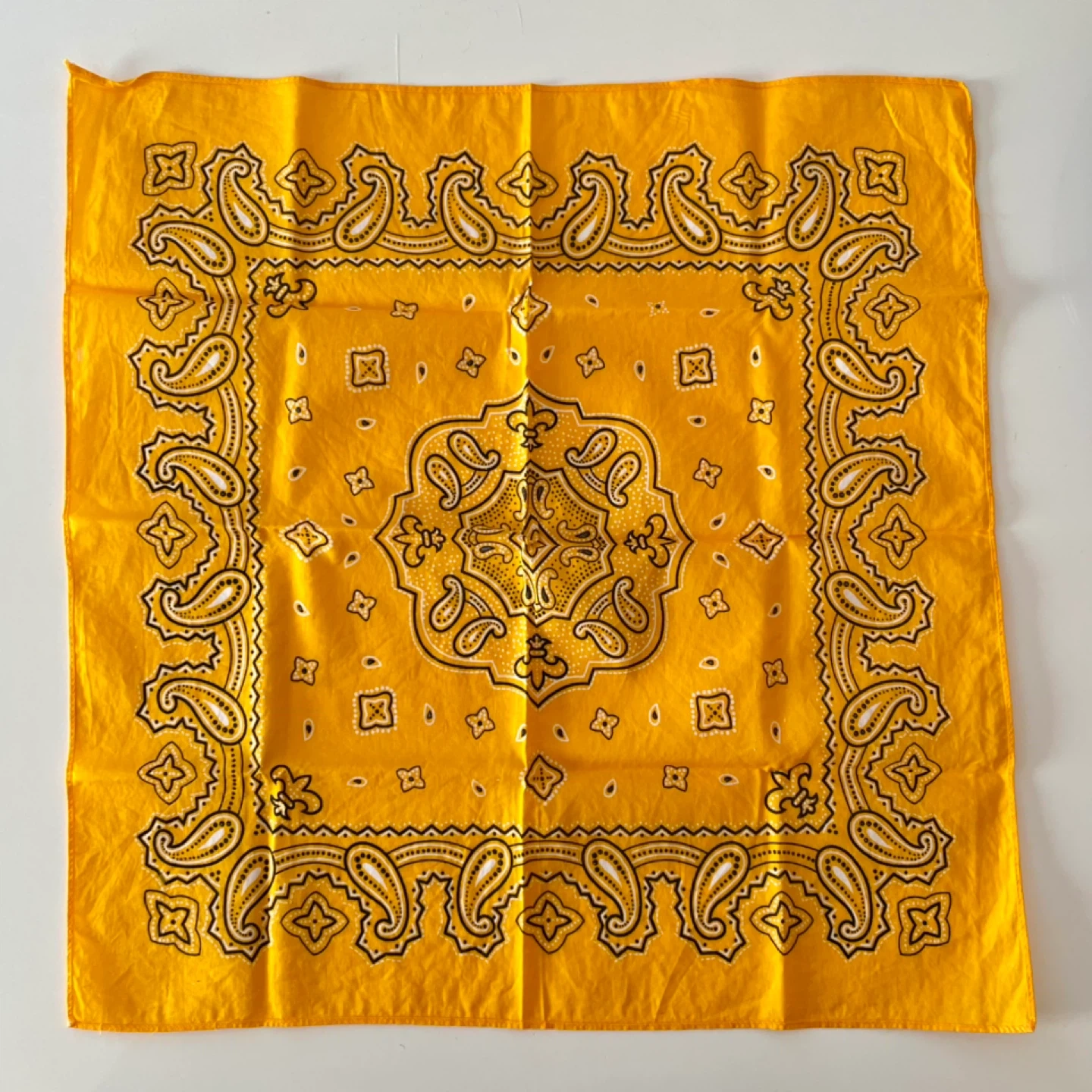 バンダナです。 ・カラー:イエロー ・デザイン:ペイズリー柄 ・状態:使用感少なめ ・サイズ : 50×50㎝ ご不明点があればお気軽にお尋ねください。 お渡しは、平日昼間にユニクロ世田谷千歳台店になります。