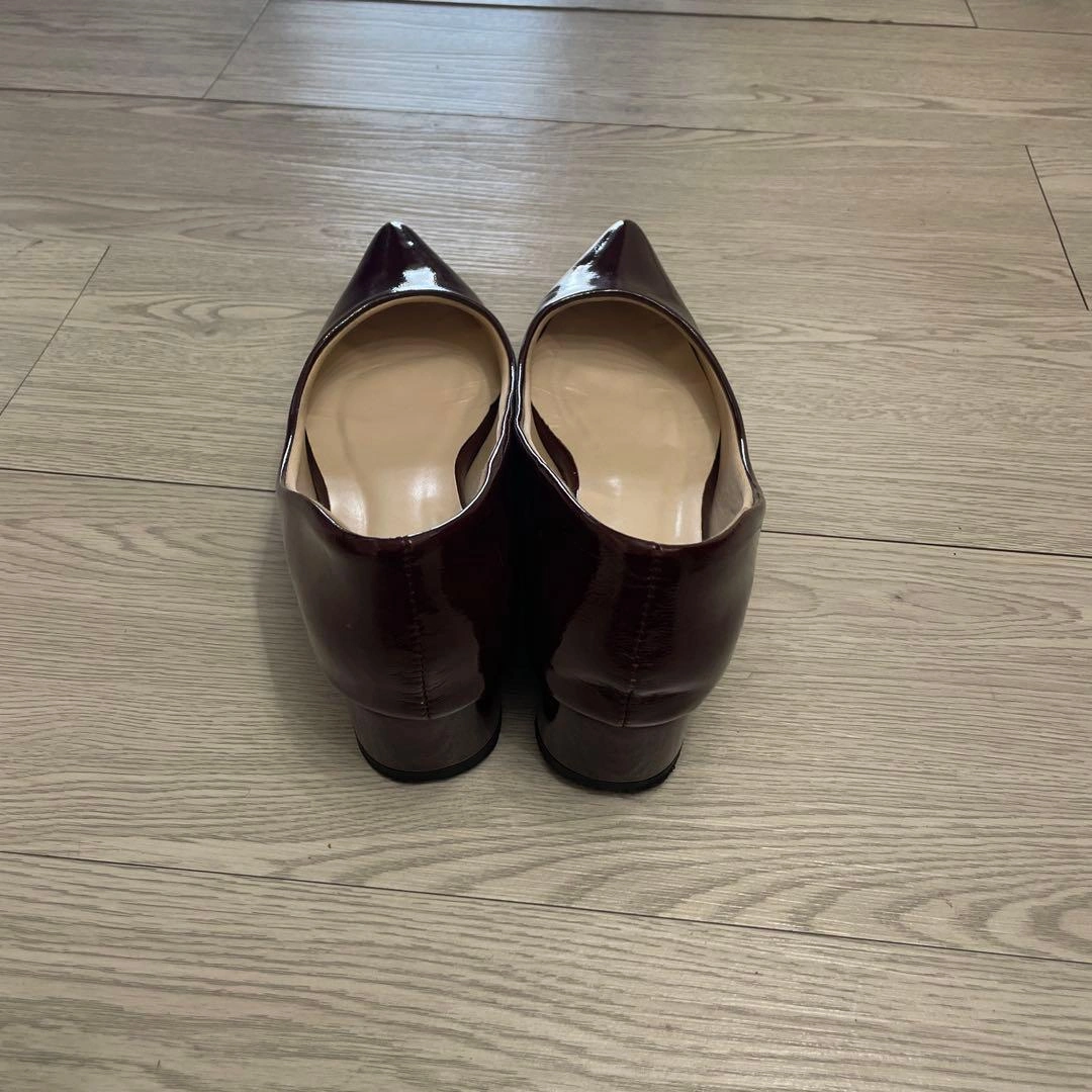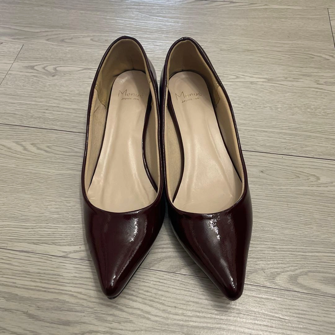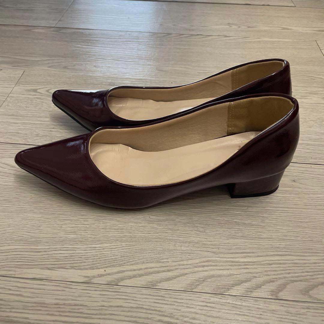 エレガントなバーガンディのポインテッドトゥパンプスです。低ヒールで履きやすいかと思います。 室内で一度着用しましたが、サイズが小さかったため出品します。 中古品にご理解いただける方にご購入をお願いいたします。 - 色: バーガンディ - デザイン: ポインテッドトゥ - ヒールの高さ: 低ヒール - 素材: 光沢仕上げ - スタイル: エレガント ヒール高さ···3.1〜5cm ご希望の方はお気軽にご連絡ください。