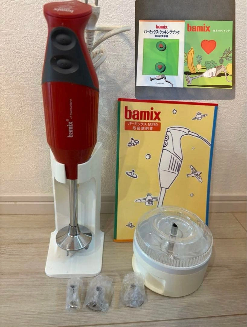 多機能ミキサー、200mlの容器付きで料理に便利です。 - ブランド: バーミックス - カラー: レッド - 付属品: ミキサー本体、カッター3種、スーパーグラインダー(パウダーディスク付)、専用スタンド、取扱説明書、基本のクッキング、バーミックス・クッキングブック - 刃の種類: ウィスク、ビーター、ニューミンサー - 容器の容量: 200ml 箱はありません。写真のもので全てです。 ▶︎バーミックス 基本のクッキング定価2,000円 ▶︎バーミックス・クッキングブック定価2,000円 使いこなせず状態はいいですが、気になる方はお控えください。 ご覧いただきありがとうございます。