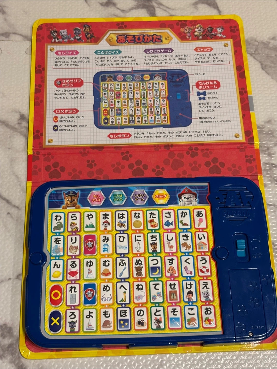パウ・パトロールのあいうえおのおもちゃです 【情報】 ブランド:パウ・パトロール 対象年齢:2歳〜6歳 定価:2,900円+税 電池使用 【状態】 使用感少なめ 正常に作動します 中古品であることご了承ください