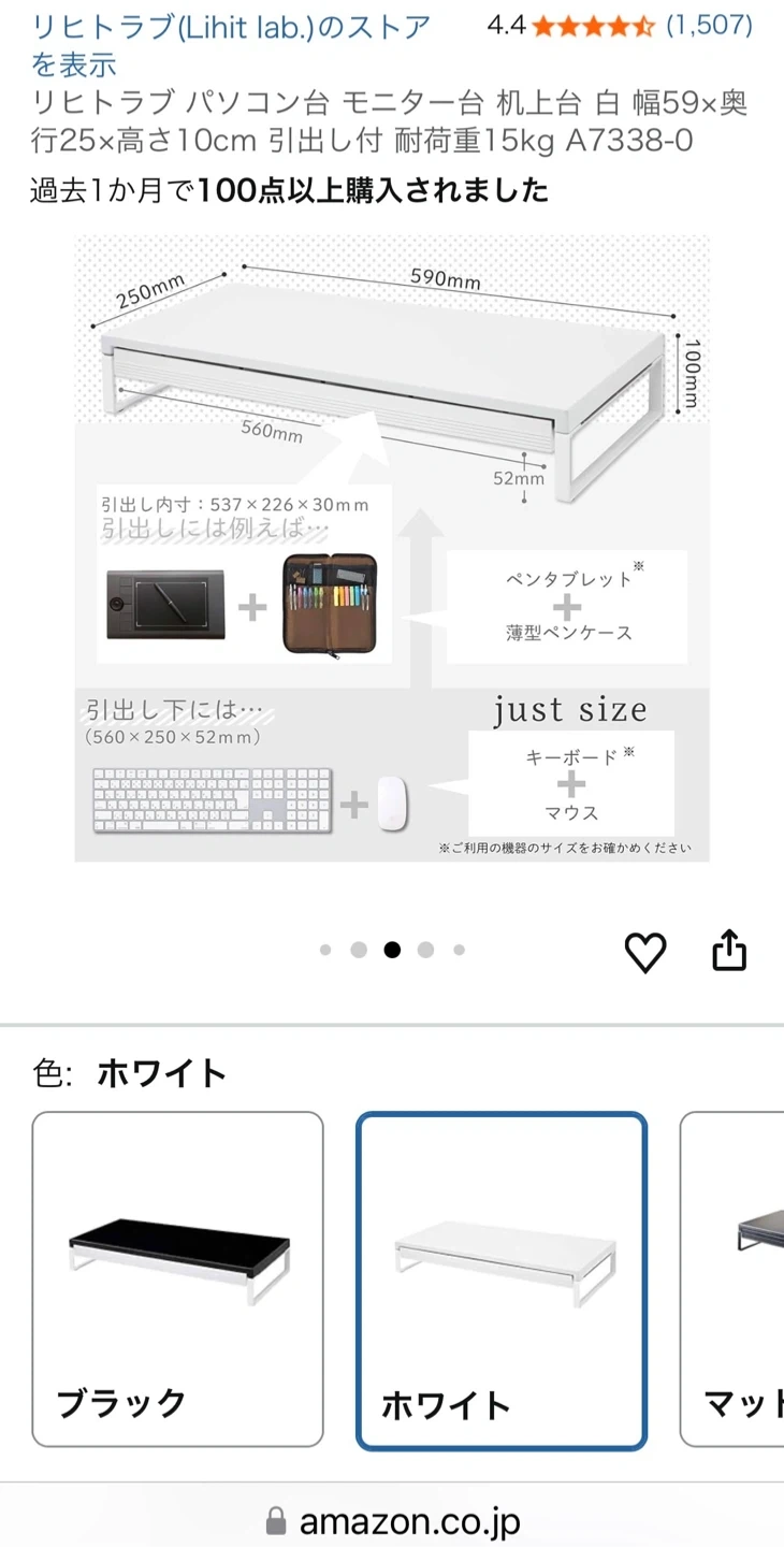 ・ブランド:リヒトラブ ・色:ホワイト ・引き出し付き ・スマホスタンド機能付き ・耐荷重:15kg Amazonで購入。引き出し以外は マグネット台になります。 キーボードを引出し下にも隠せるのでスペースが広がり使えます。 中古ですがほぼ使用してないのでキレイです。 時間/6~18時 日時応相談。 受け渡し場所/八丁堀周辺