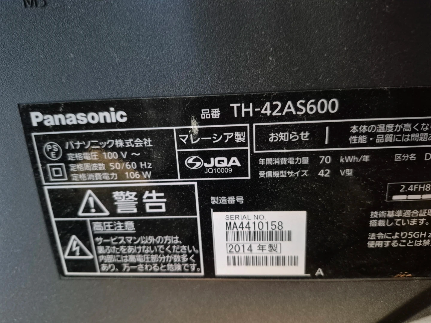 パナソニックの液晶テレビです。 【情報】 ブランド:パナソニック ビエラ 型番:TH-50AS600 (42V型) 説明書あり リモコンなし B-CASカードなし 家の受信を止めアンテナないので画像確認出来ませんが今年の夏まで見てました 元電源から通電確認はできました。 現状の最新画像確認してないのでジャンク扱いで出します 金属、部品欲しい方でも構いません 中古品であることをご了承ください。