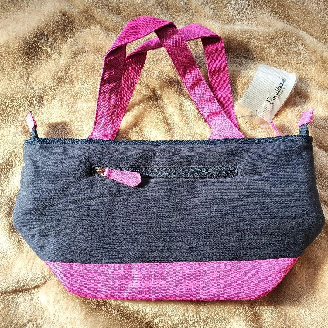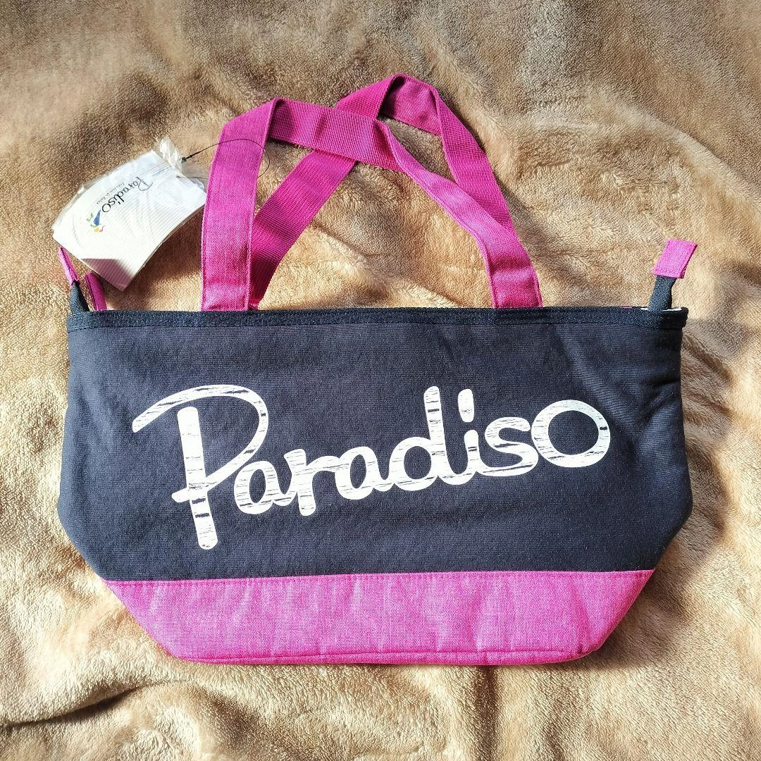 未使用タグ付きのトートバッグです。 ピンクとブラックのコンビネーションで、ロゴが入っています。 - ブランド: Paradiso - 色: グレー/ピンク ブラック - デザイン: ロゴ入り - スタイル: トートバッグ - ファスナー: 外側ポケットファスナー付き 【詳細】 ◽カラー...ピンク、ブラック 他 ◽素材..ポリエステル ◽サイズ.. 横幅W23×縦高さH22×奥行D18 ◽仕様 外側:ファスナー付きポケット×1 メイン収納:ファスナー開閉 内側:ファスナー付きポケット×1 ,オープンポケット×2 ご覧いただきありがとうございます。