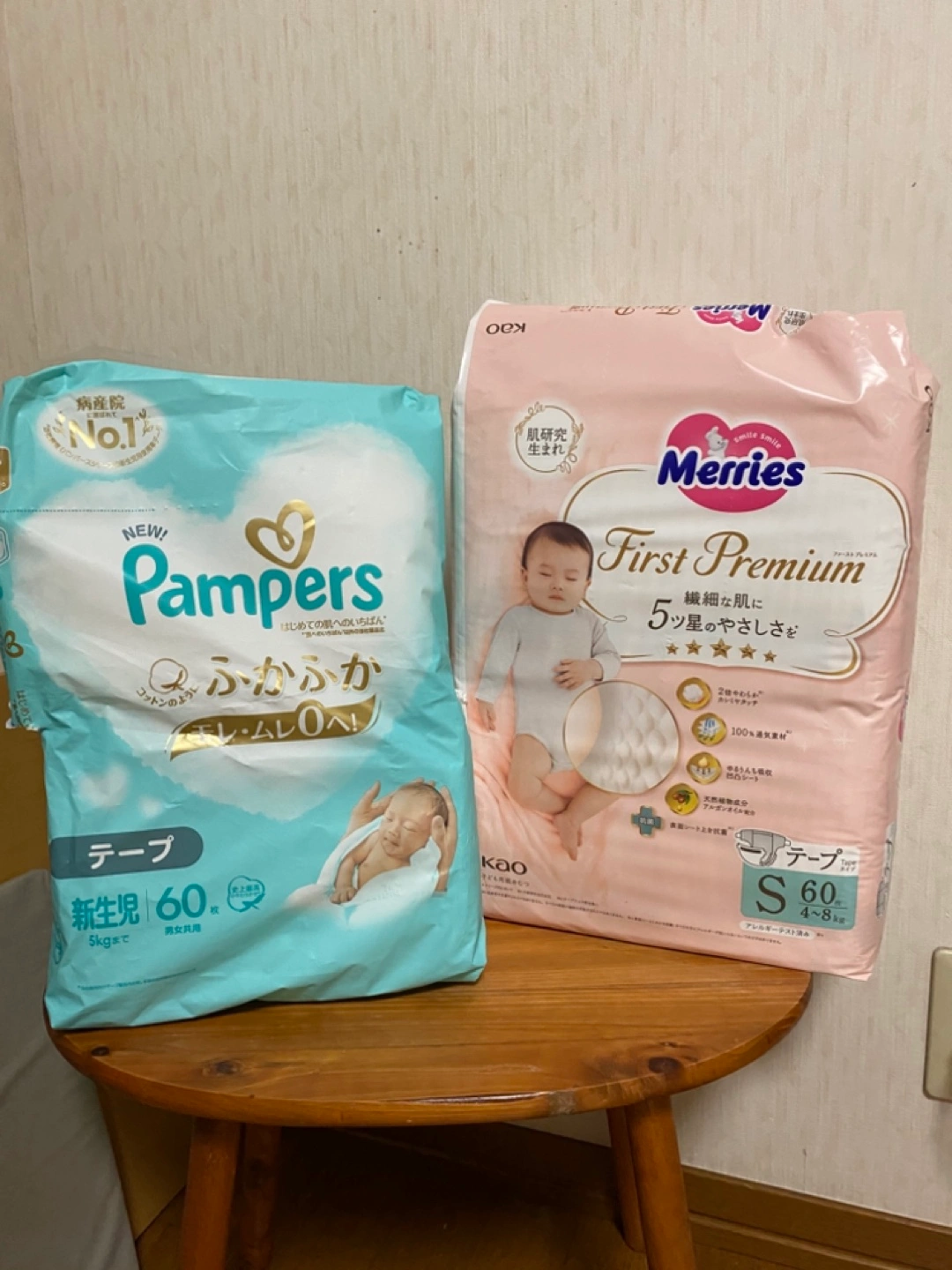 •パンパース 新 生児用 テープタイプ 24枚 ・新品未使用. メリーズ ファーストプレミアム Sサイズ テープタイプ 60枚 実家に来た際に使っていたオムツです。 サイズアウトした為、出品しました。 パンパースは袋を半分に切って使用していました。残り24枚となります。こちらはお値段にはいれませんので、不要な方はご購入時にお申し出ください。 よろしくお願い致します。