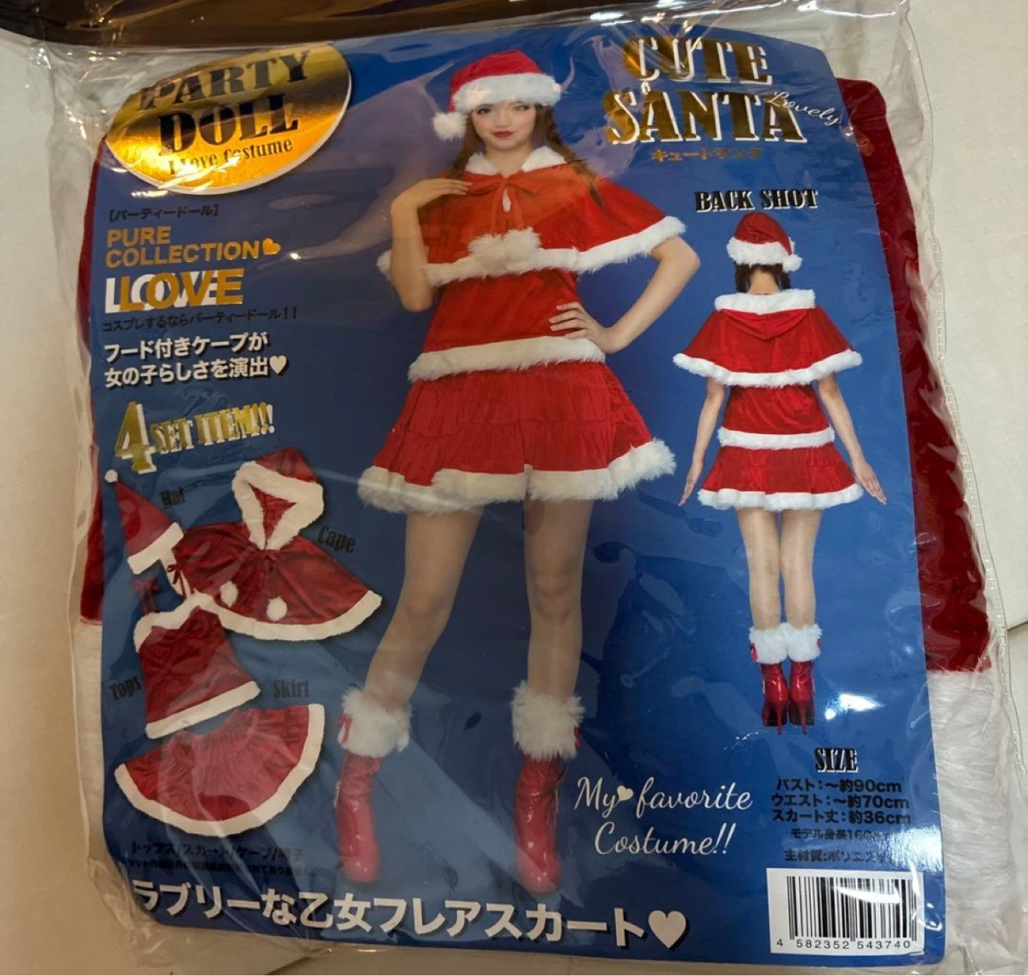 サンタのコスプレ衣装2点セットです。 ・トップス、スカートのセット ・赤と白の定番カラー ・イベントやパーティーに 新品、未使用品 サンタコスチューム キャミソール スカートのみ サイズバスト約90cm、ウエスト約70cm。 他の際に色移りがあったため、スカートの下の方が赤く若干染まっています。よく見ないとわからないかと思いますが、気になる方はご遠慮下さい! - セット内容: スカート、トップス、 - サイズ: バスト約90cm、ウエスト約70cm、スカート約36cm - スタイル: サンタコスチューム ご覧いただきありがとうございます。