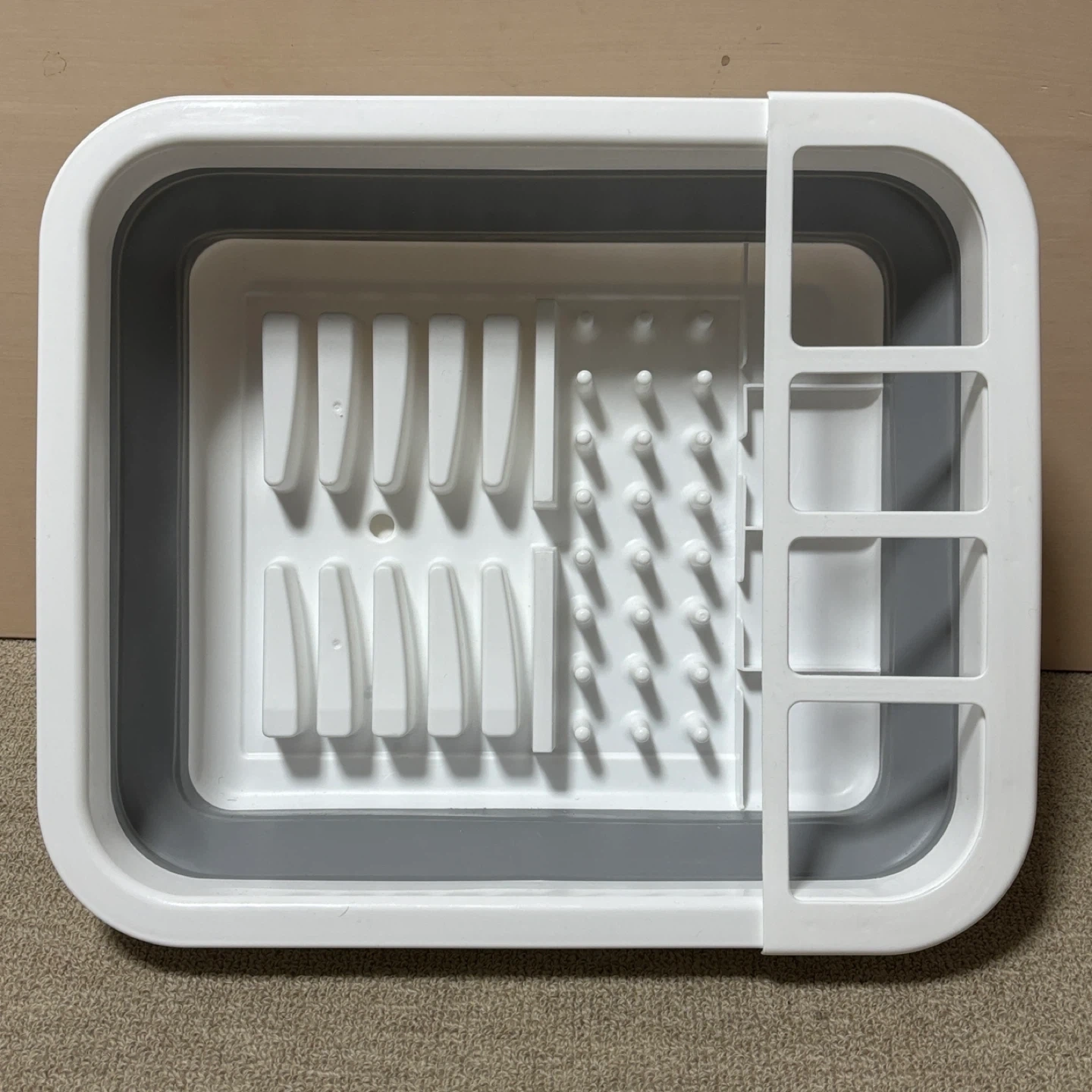 パール金属 水切り かご ラック 折りたたみ できる キッチンメイト HB-6355 製品サイズ:(約)使用時/幅36.5×奥行31.5×高さ13cm、収納時/幅36.5×奥行31.5×高さ6cm 製品重量:(約)0.62kg 素材・材質:ポリプロピレン・熱可塑性エラストマー(耐熱温度60度・耐冷温度-20度) 目立つようなダメージは見当たりません