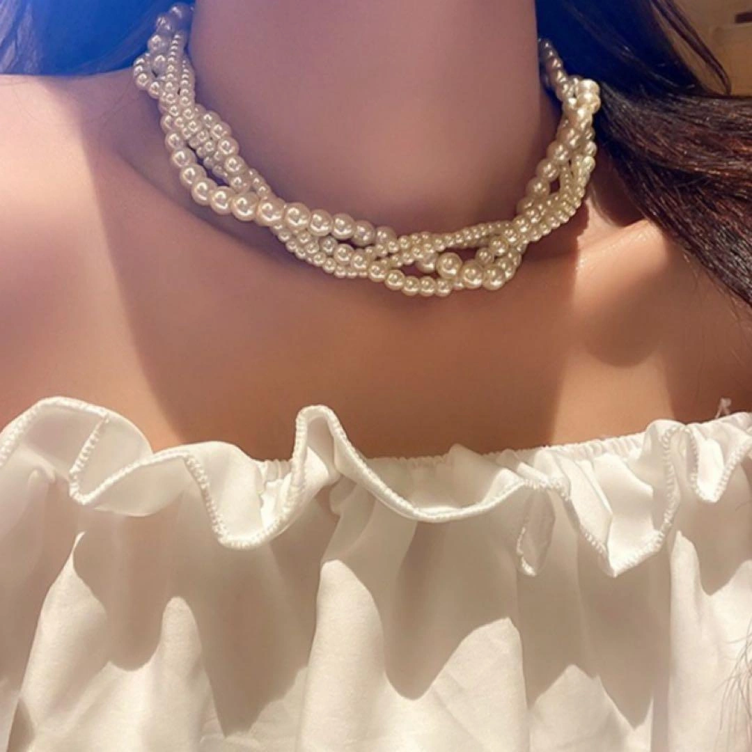 パール風ネックレス アクセサリー ネックレス ビジュー チョーカー 結婚式 新品