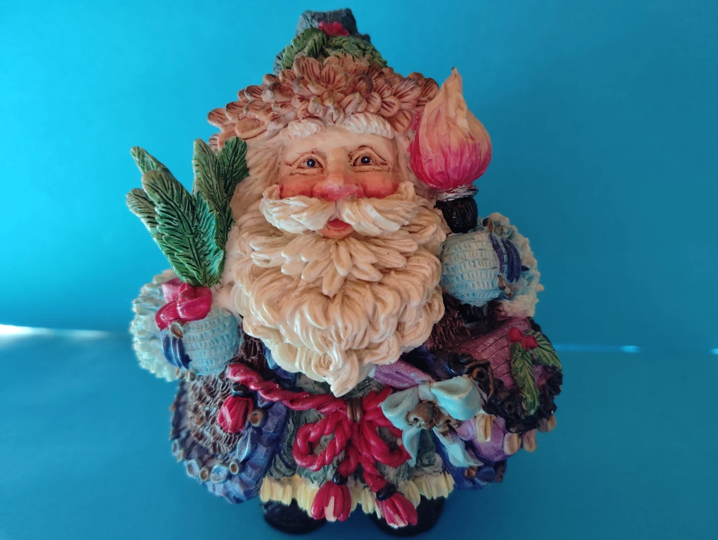 クリンクル クラウス(クシャクシャの様なイメージ)サンタ スゥエーデンのサンタです。豊かな表情、緻密な装飾は、まさに大人のコレクションと言え事実コレクターに人気があります。 *今は手に入りづらくなっております。 サンタクロースの人形です。 ・メーカー:Possible Dreams ・デザイン:花や葉、リボンで装飾されたサンタクロース ・状態:目立つキズなし ・サイズ:(約)縦横7.5 高9.7 センチ ・素材 : 樹脂と思われます