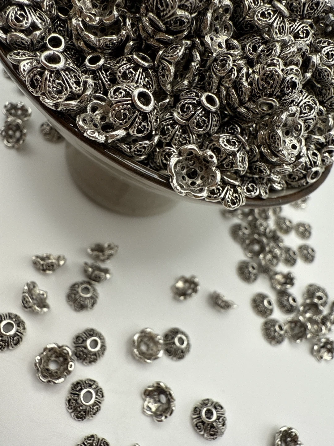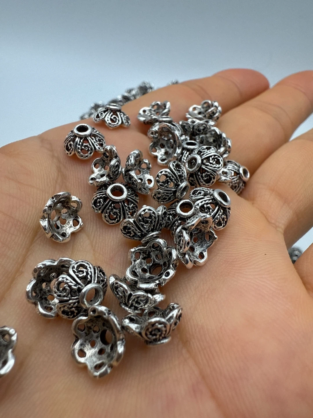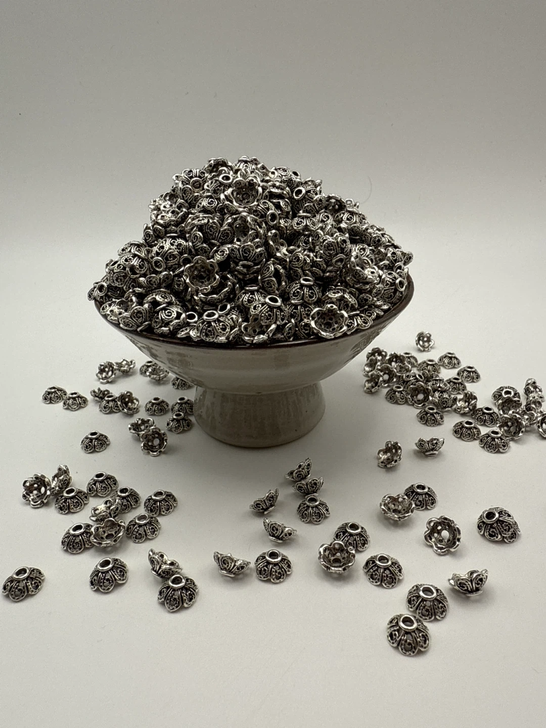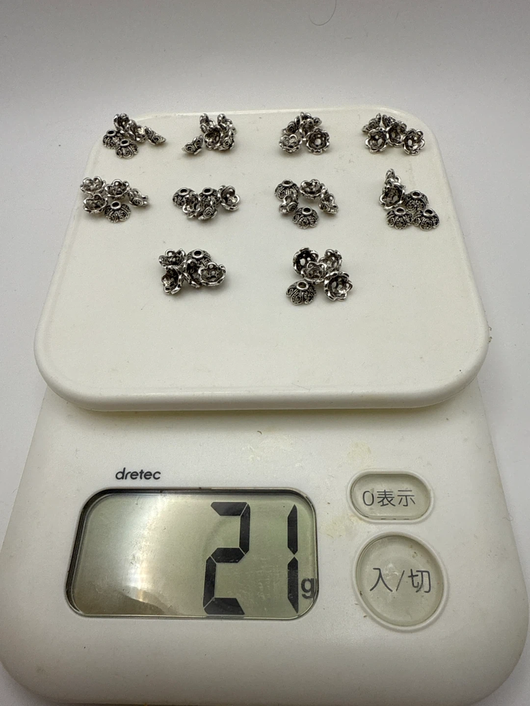 ビーズキャップ シルバー 約465gバラ売り可能 大量セットです。 ・カラー:シルバーメッキ ・重量:約465g(袋に入った状態) *50個で約21gを目安にしてください。 ・花のようなデザイン ・価格は50gの金額です。50g以上でしたら何グラムでも承ります。 吉田町、もしくは地下鉄ブルーライン下永谷駅からから関内駅 界隈で受け渡しできると助かります。 大量購入をご検討の場合はお値段ご相談ください。 ご不明点があればお気軽にご連絡ください
