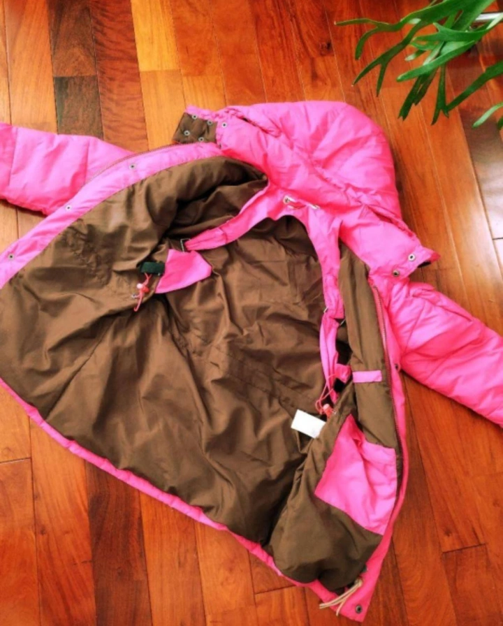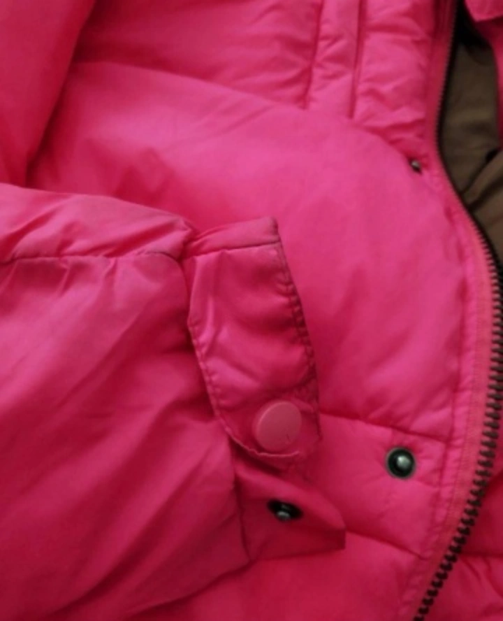 スキーウェア、スノボウェア、あるいは自宅での防寒対策、節電対策にどうぞ♪ 鮮やかで濃い目の綺麗なピンク色です。 雪山では目立ってとても可愛いです。 袖のところが黒ずんでしまっています、他に目立つシミ汚れはありません。 中綿 カラー...ピンク 柄・デザイン...無地