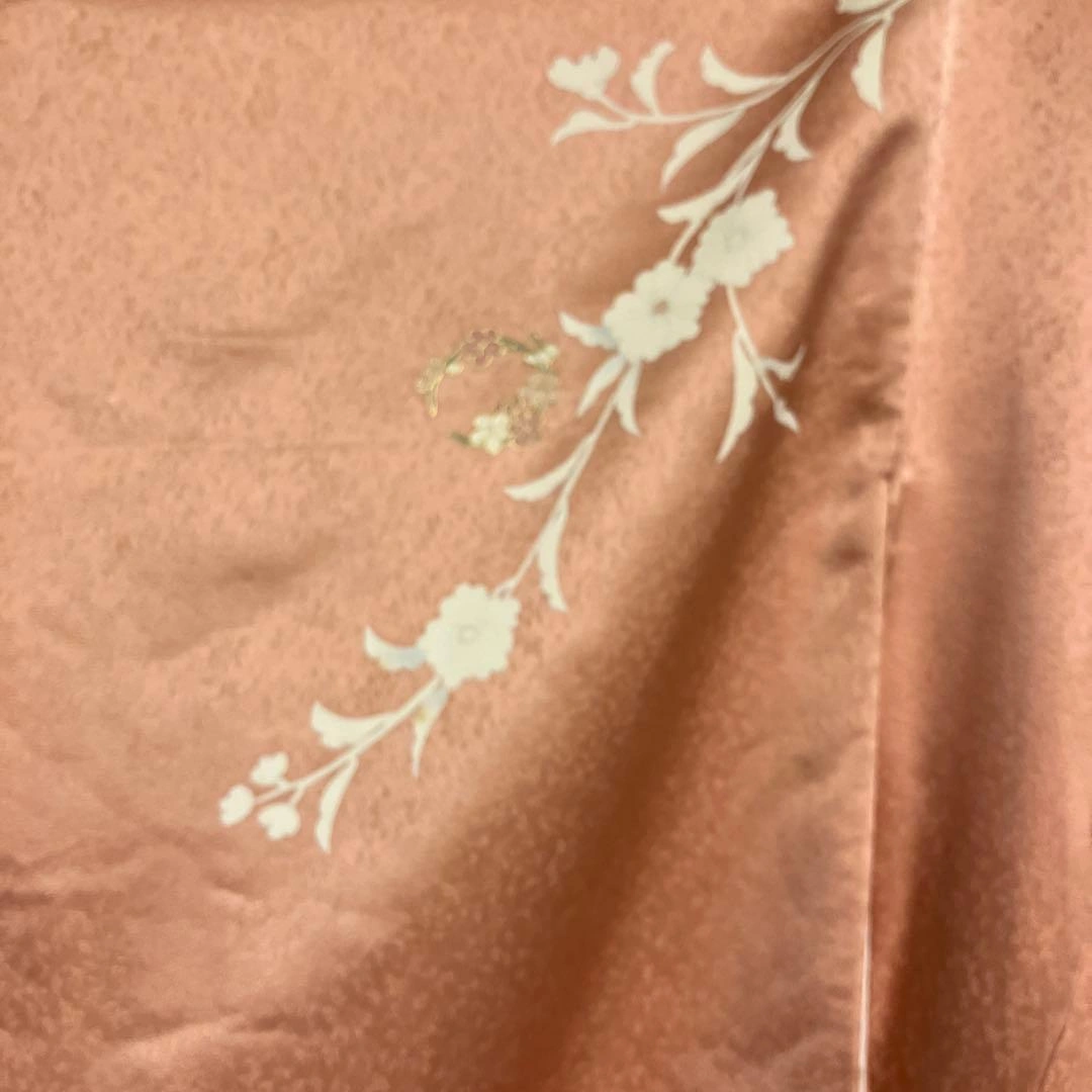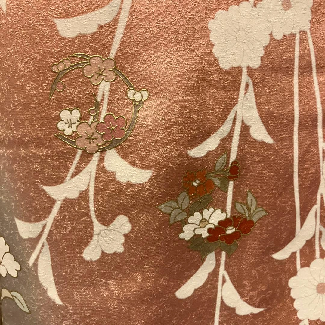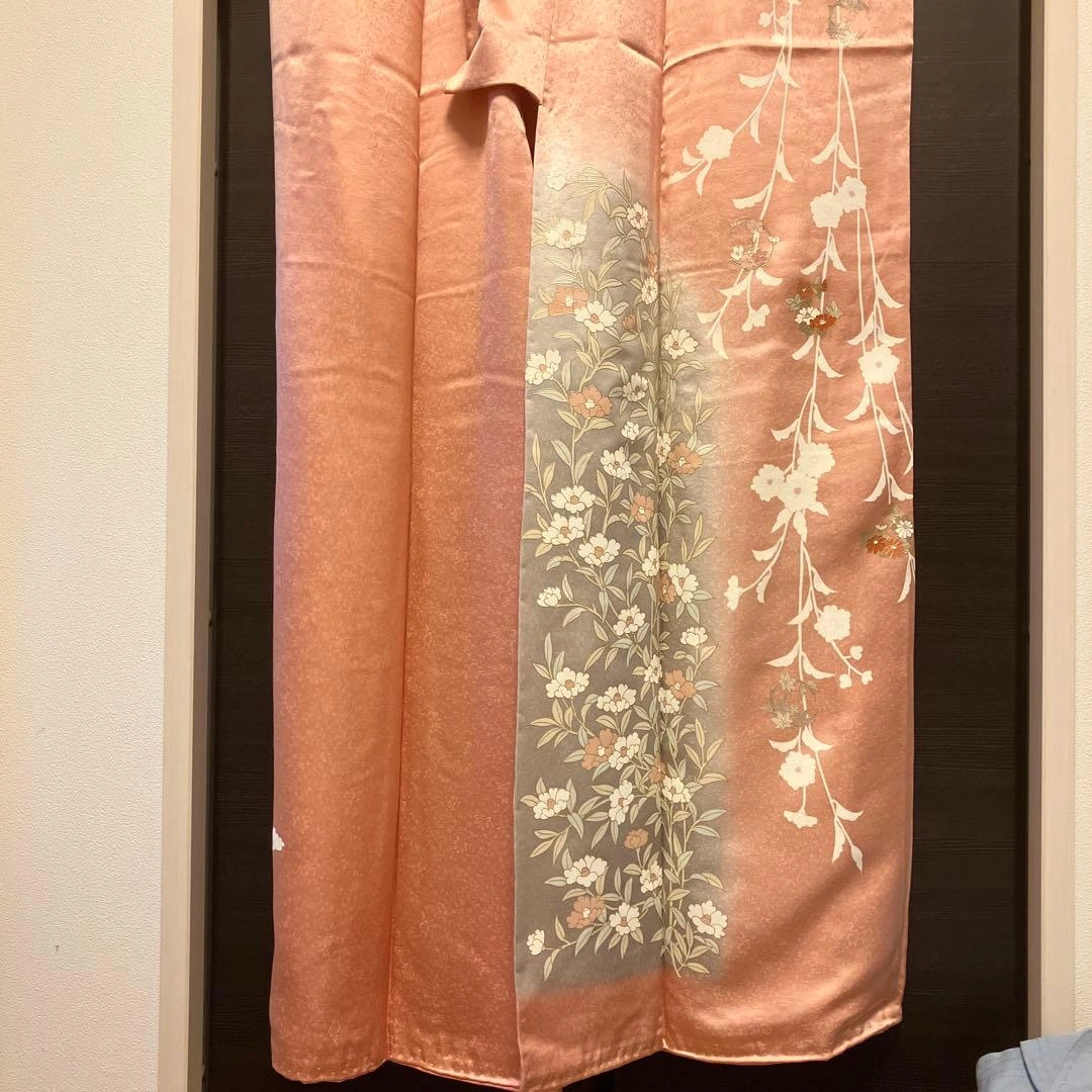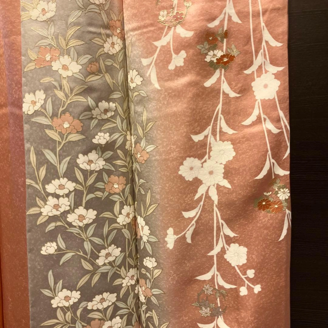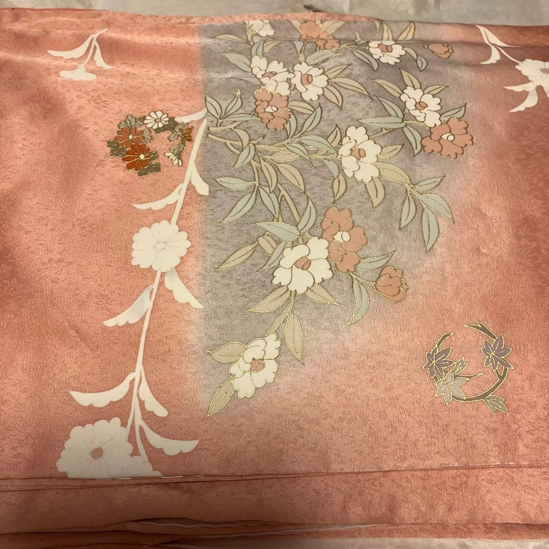 ピンク グレー花柄 訪問着 正絹