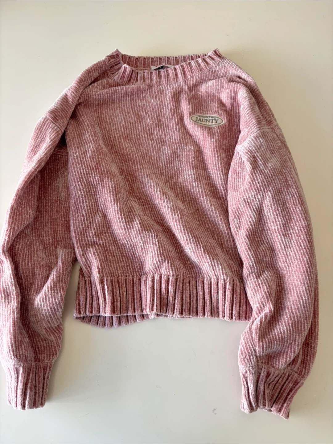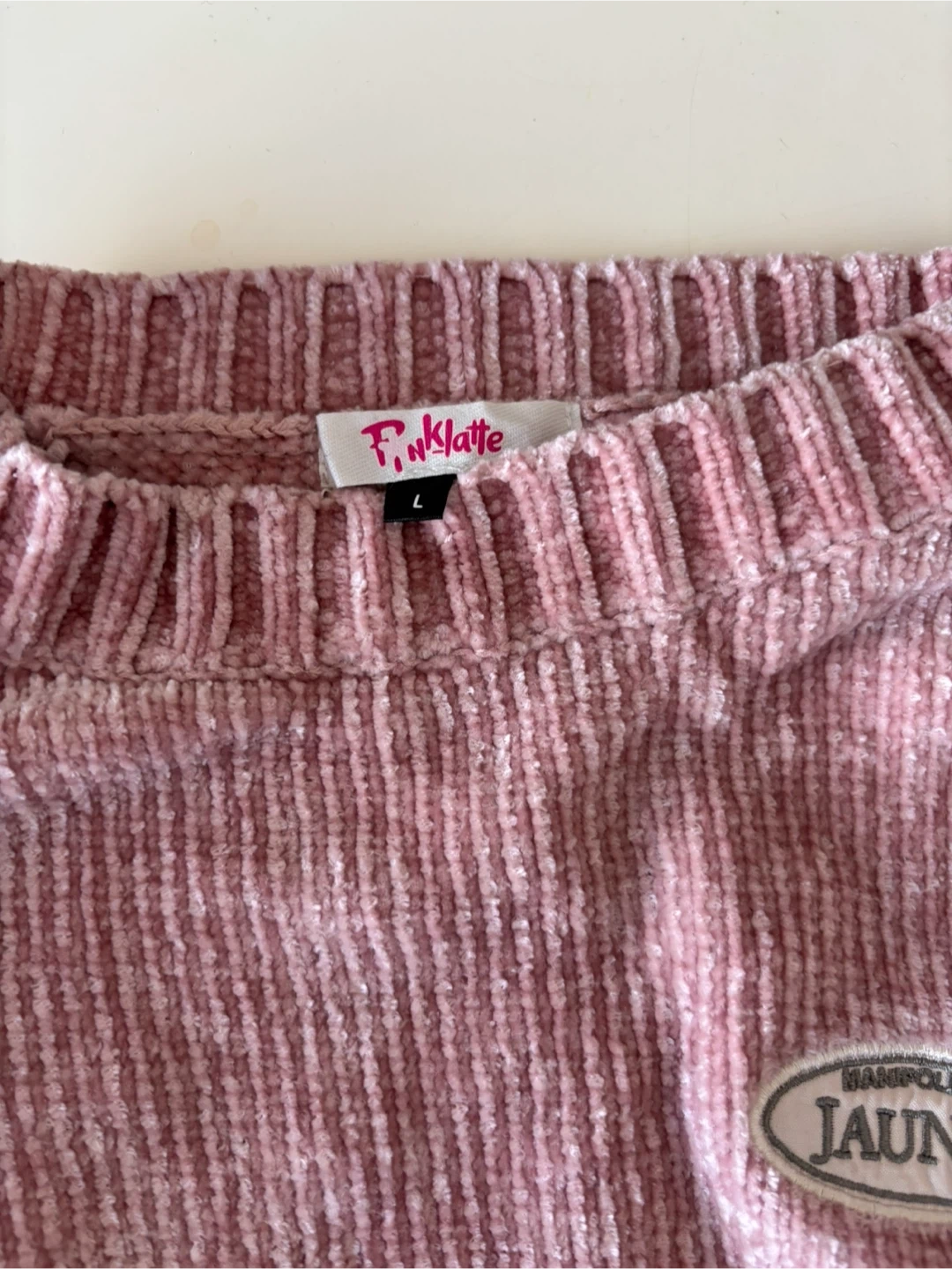 petit main 長袖 ワンピース リボン ハート ドッキング リブニット