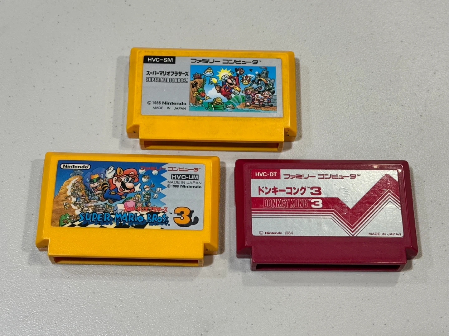 ファミコンのカセット3本セットです。 ・スーパーマリオブラザーズ (HVC-SM) ・スーパーマリオブラザーズ3 (HVC-UM) ・ドンキーコング3 (HVC-DT) 中古品であることをご了承ください。