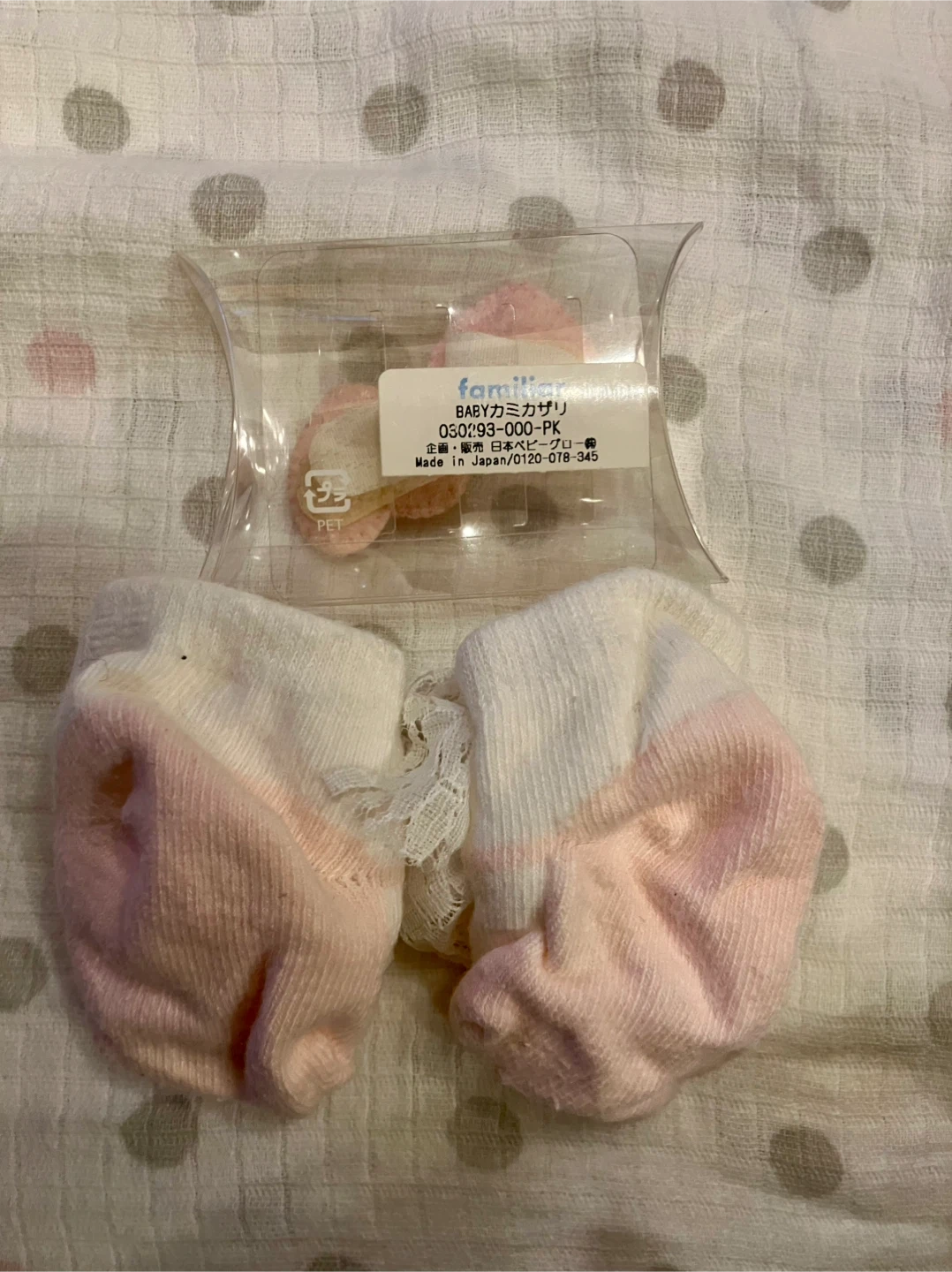 ハートモチーフとリアちゃんの刺繍がとっても可愛いベビー用の髪飾りです。 留め具部分が面ファスナー(マジックテープ)になっており、赤ちゃんにも優しいです。 開封して見ただけで使用せず保管しておりました。 お品物の状況は写真をご覧ください。 大きな汚れ等はありませんが、ご理解いただける方のみご購入をお願いいたします。 靴下はファミリアではありませんが、おまけにお付けいたします^_^