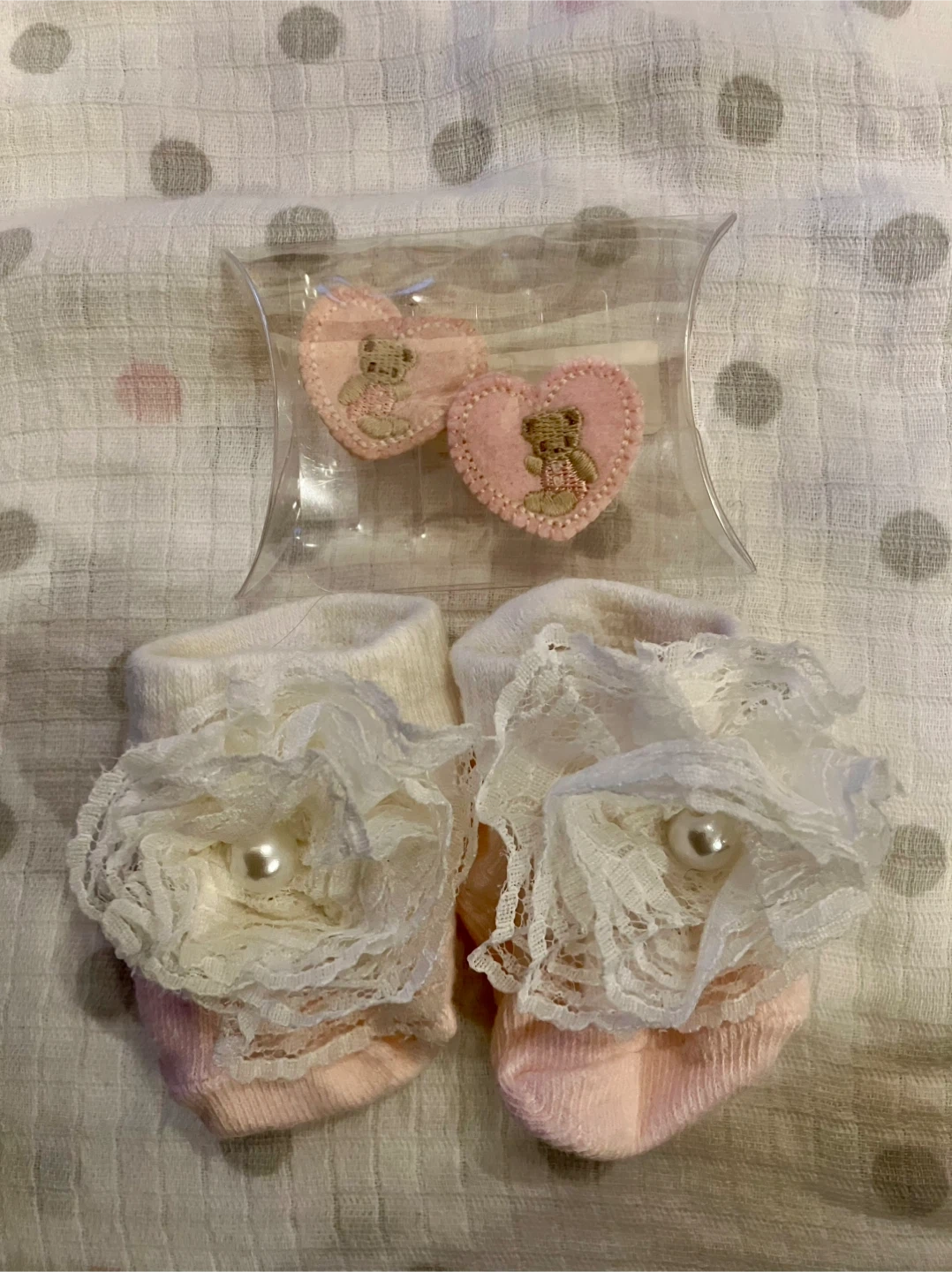 ファミリアベイビー髪飾り、おまけ靴下付き