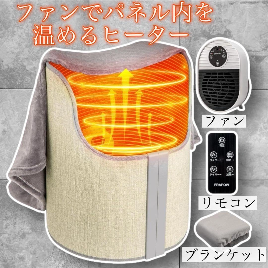 ファンによってパネル内を温めるヒーターです。 ※複数購入希望の場合はお値引きもするので、コメントください。 ※箱は傷んでますが、商品はきれいなのでご了承の上ご購入ください。 未使用ですが検品のため開封しています。 【10秒速暖&遠距離操作可能】 電気ヒーターを使用して、3秒で温風を発生、10秒で全パネルが暖かいになります(パネル自体は発熱しません)。エアコンのように乾燥させることがなく、便利なリモコン機能もあります。 【3階段温度調節&タイマー機能】 3段階な温度を調整できる便利な足元ヒーターです。(2時間/4時間/6時間)の切タイマー機能がついています。設定したあと、電源は自動にオフできます。 【熱効率向上&熱量を保つ】 普通の3面パネルヒーターよりも約80%広い暖房面積を持ち、ヒーターの熱損失を防ぎ、温かさを倍増させます。毛布も付き、熱が流失しません。 【安全性高い&省エネ】 電源遮断装置を搭載しており、転倒時(45度転倒を超えるすると)電源が自動オフになります。ペットや子供がいる家庭でも安心的に使用できます。 【多用途】 自宅、会社、オフィス、など様々なシーンに適用します。 $$2899 g1230 パネルヒーター 足元ヒーター セラミックファン リモコン対応可能 省エネ 360°全方位発熱 毛布つき タイマー機能 3段階温度調節 電気ヒーター 速暖 保温 遠距離操作 足温器 冷え対策 過熱保護 折り畳み式 室内 オフィス PES認証済 ご希望の方はお気軽にご連絡ください。