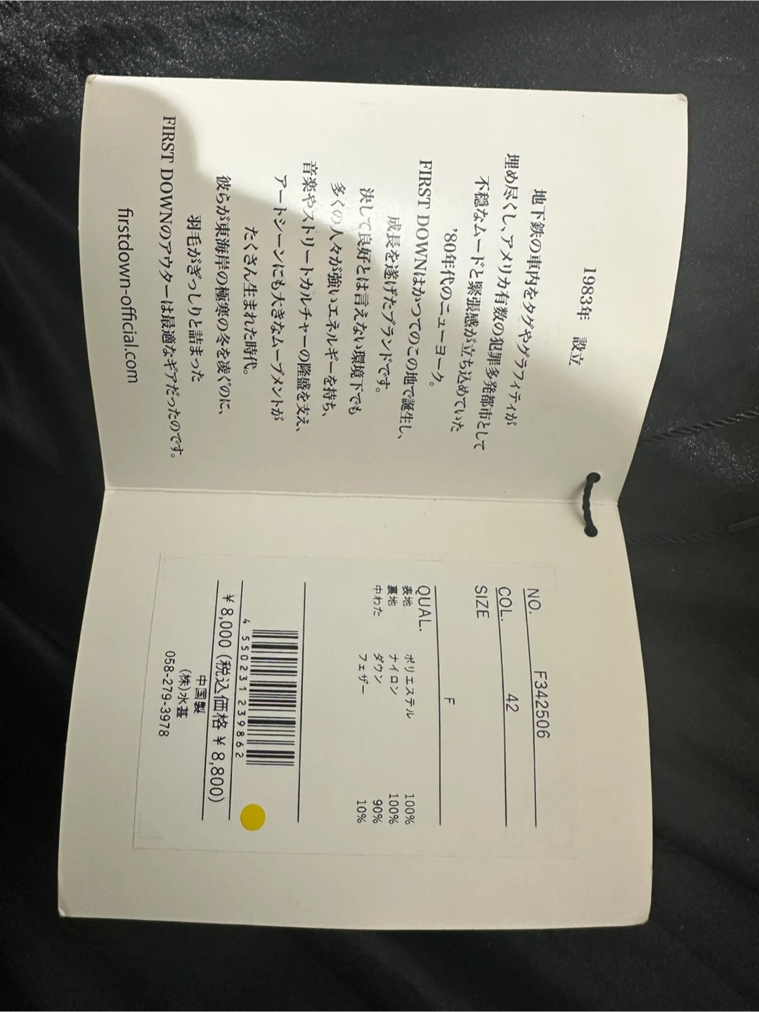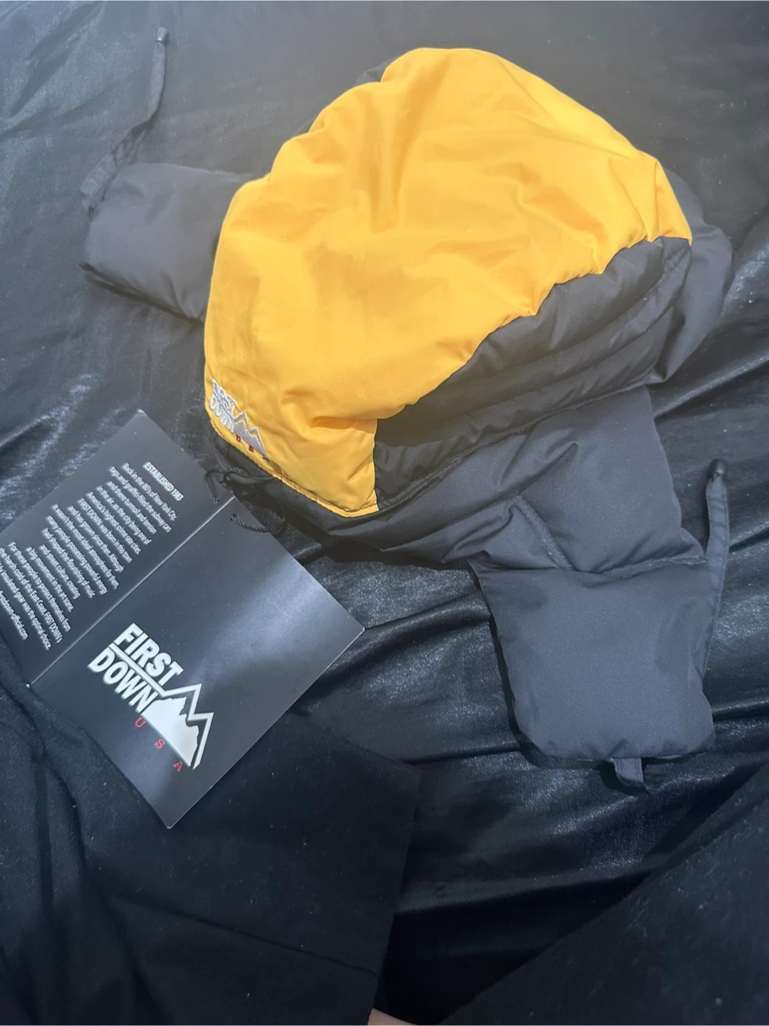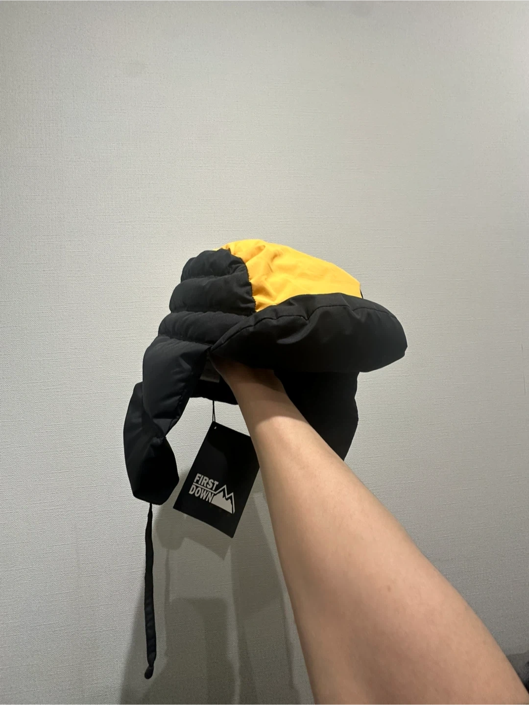 ファーストダウンのダウン帽子です。 中わたがちゃんと羽毛ですので冬も暖かく 過ごせると思います。 去年セレクトショップで購入したのですが、 ワンシーズン使うことなく今年になり、 久々に出してみると恐ろしく似合わないと 感じたので出品いたします。 【情報】 ブランド:ファーストダウン 型番:F342506 中わた : ダウン90%     フェザー10% 色:ブラック、イエロー サイズ:F 【状態】 新品・未使用 定価8,800円です。