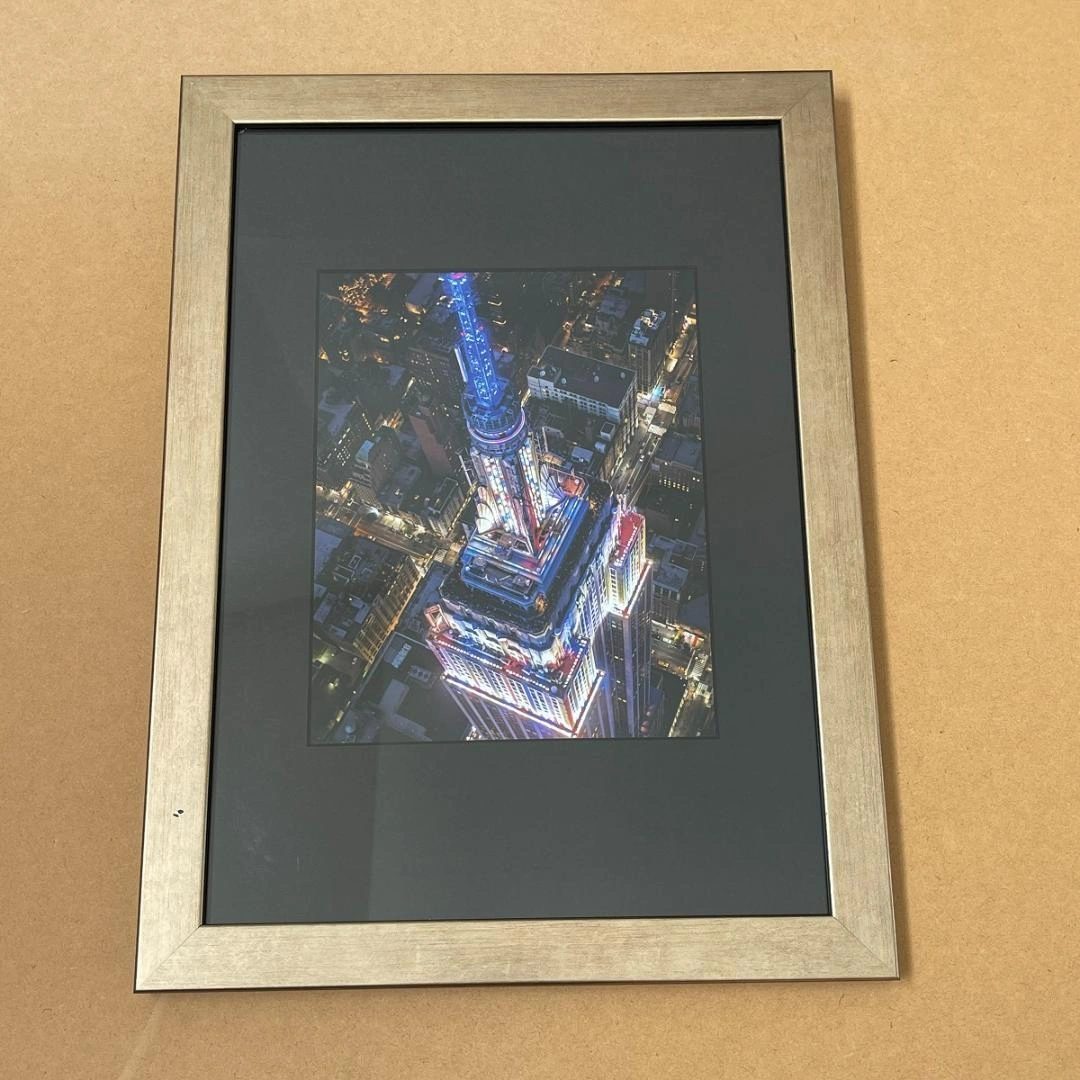 ニューヨークの象徴的な建物、エンパイアステートビルを夜のマンハッタンを背景に撮影された写真NYで購入し、日本でLoftで6000円ほどかけて額装してもらったものです。 使う場所がないので出品します。 アート:写真 フレーム 素材:木製、ガラス 色:ゴールド サイズ:W42xH55cm ご希望の方はお気軽にご連絡ください。
