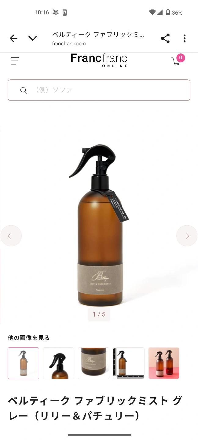 フランフランのファブリックミストです リリー&パチュリー 【情報】 ブランド:フランフラン 種類:ファブリックミスト 【状態】 使用感少なめ 2回吹きかけました。 とても良い匂いなんですがバニラみたいな甘い匂いが好きな私には合わなかったので出品します。 中古品であることご了承ください 新大久保、市ヶ谷、牛込神楽坂 でお渡し可能です。