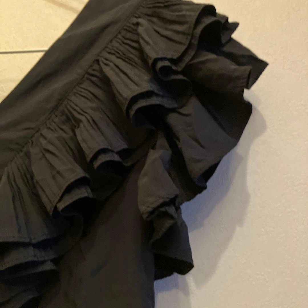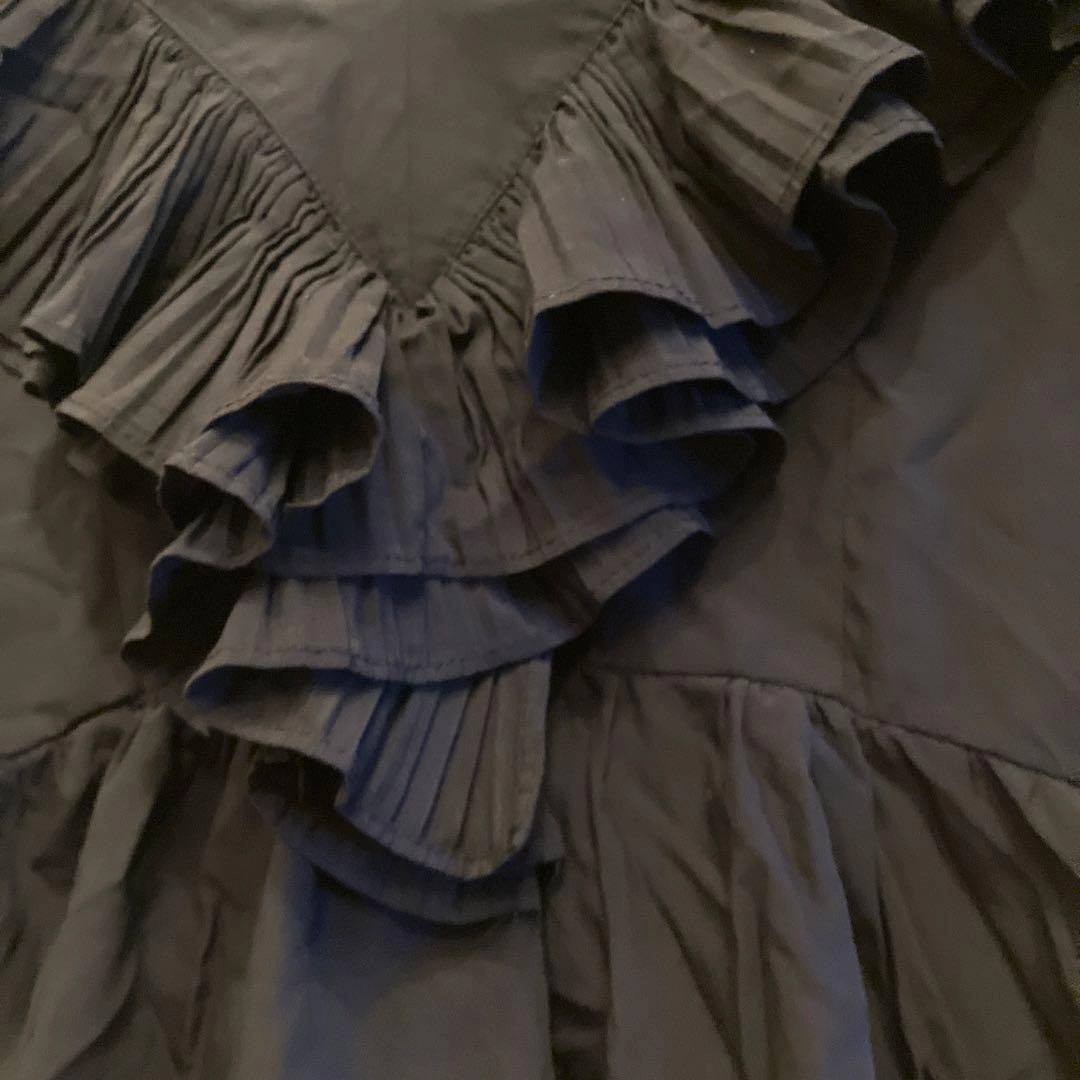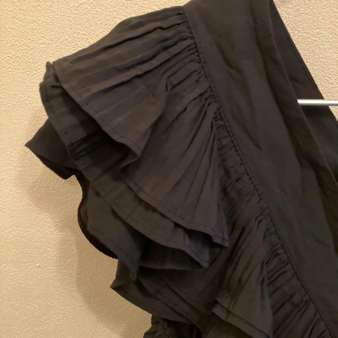 フリルデザインの黒いVネックシャツです。前面に丸ボタンが付いています。 色は黒で、フリルが華やかな印象です。 着丈51cm 肩幅はフリルがあるため計測が難しいです。 一度着用し、ホームクリーニング済みです。 - 色: 黒 - デザイン: フリル付き Vネック - ボタン: 前面ボタン付き - 袖: フリル袖 USED品にご理解いただける方のみご検討をお願いします。 カラー···ブラック系 カラー/ネック···Vネック 透け感···透け感なし 季節···春夏 ご希望の方はお気軽にご連絡ください。