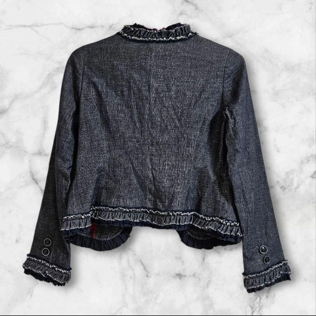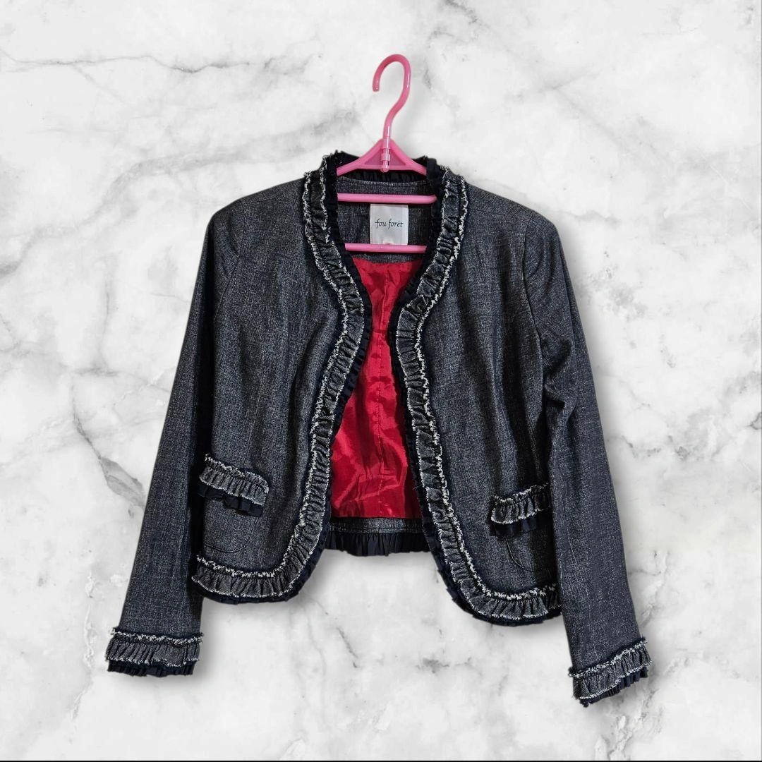 フリンジデザインのダークデニムジャケットです。赤い裏地が特徴で、カジュアルなスタイルに合うと思います。 自宅保管していました。 引っ越しのため、断捨離でお譲りしたいと思います。 数回着用後、保管していました。 虫除けをしながら保管していました。 状態が気になる方は、ご質問ください。 - 色: ダークデニム - デザイン: フリンジ付きジャケット - 裏地: 赤色の裏地 - 袖: フリンジ付きの長袖 - スタイル: カジュアルなスタイル 肩幅/身幅/袖丈/着丈 袖丈...55cm 着丈...45cm デニムカラー...ブルー デニムカラー...ブラック デニムカラー...濃紺 汚れ・破れ・臭いなど...なし ご希望の方はお気軽にご連絡ください。