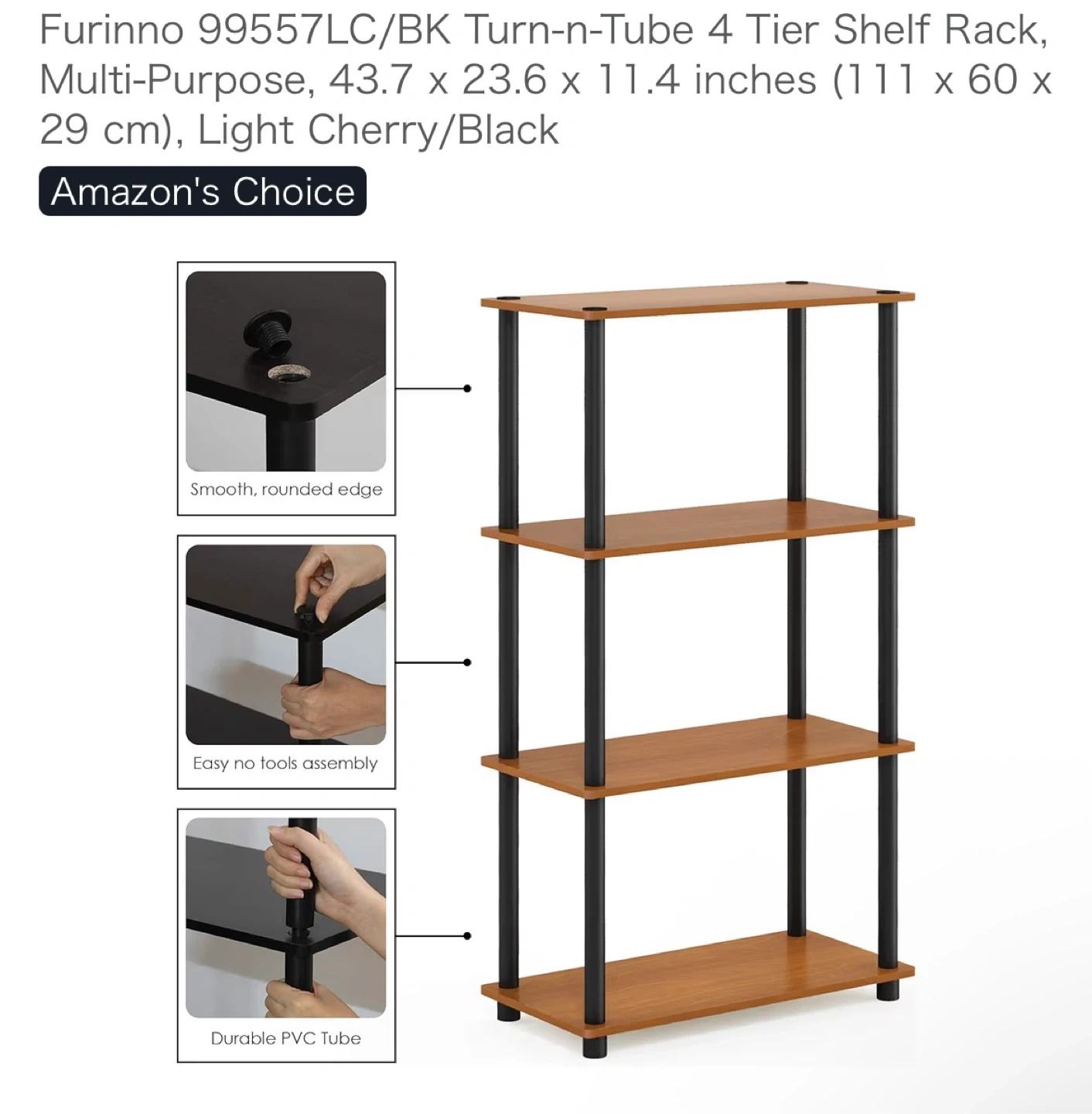 フルイノの4段シェルフラックです 【情報】 ブランド:フルイノ 型番:99557LC/BK サイズ:111 x 60 x 29 cm カラー:ライトチェリー/ブラック 【状態】 目立つ傷や汚れなし 中古品であることご了承ください