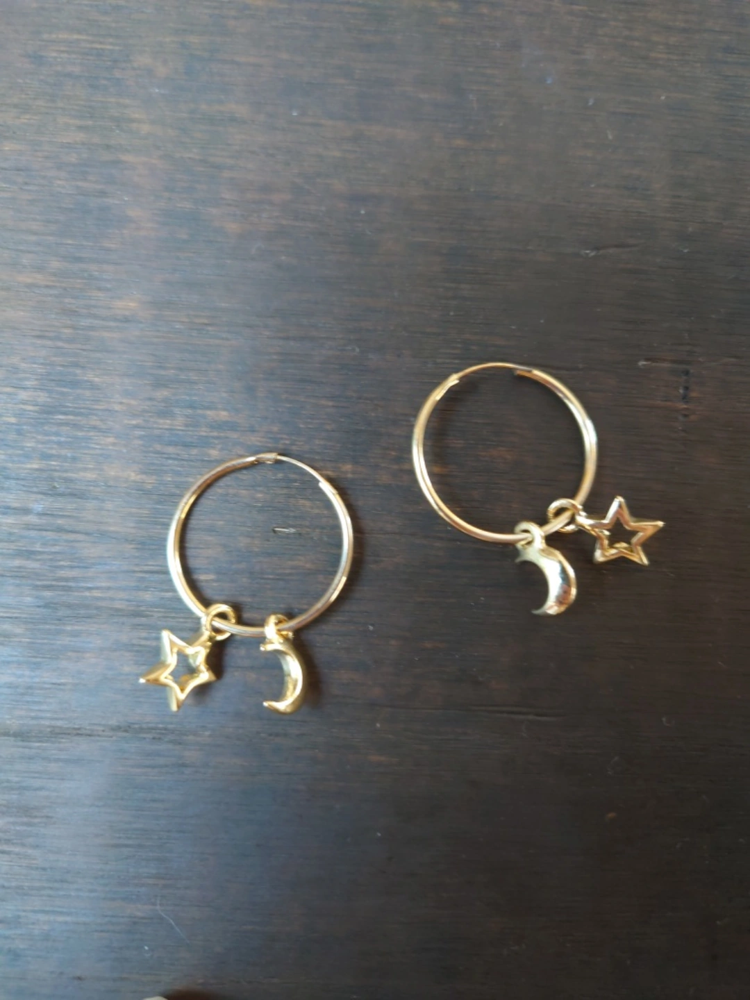 ゴールドメッキのピアスです。 ・色:ゴールド ・デザイン:月と星 消毒済み 可愛い シンプル ファッション フックピアス 生活雑貨 日用品 小物 装飾 オシャレ 雑貨 アクセ 季節 夏 冬