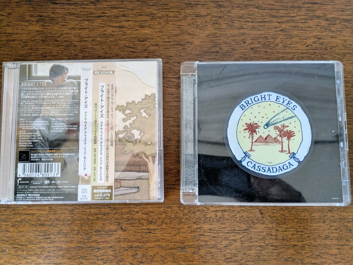 アメリカの人気インディーズアーティスト、Bright Eyes のCD2枚セットです。 ・CDタイトル: I'm Wide AwakeIt's Morning(国内盤) Cassadaga(輸入盤) ・状態: Cassadagaはケースにスレあり。 I'm〜は目立つ傷なしです。 中古品であることをご了承ください。