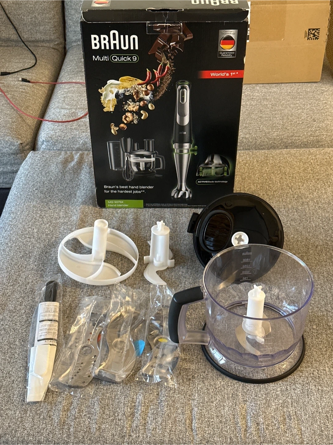 ブラウンのマルチクイック9のミキサーパーツです。 ※本体は無し 【情報】 ブランド:ブラウン 商品名:マルチクイック9 型番:MQ9075X 【状態】 使用感少なめ、全体的にきれい ミキサーブレードは未開封 【付属品】 箱、アタッチメント多数 中古品であることご了承ください。