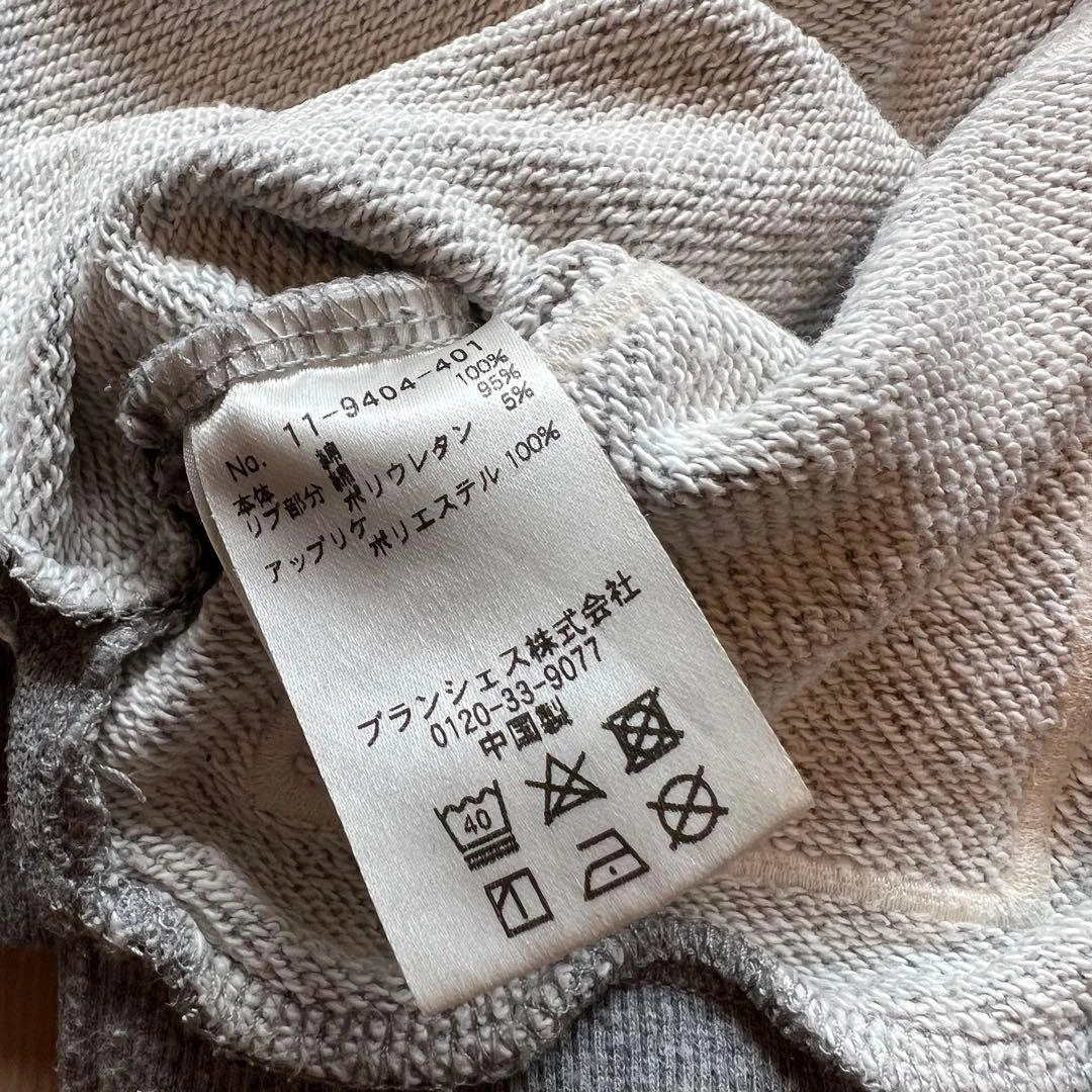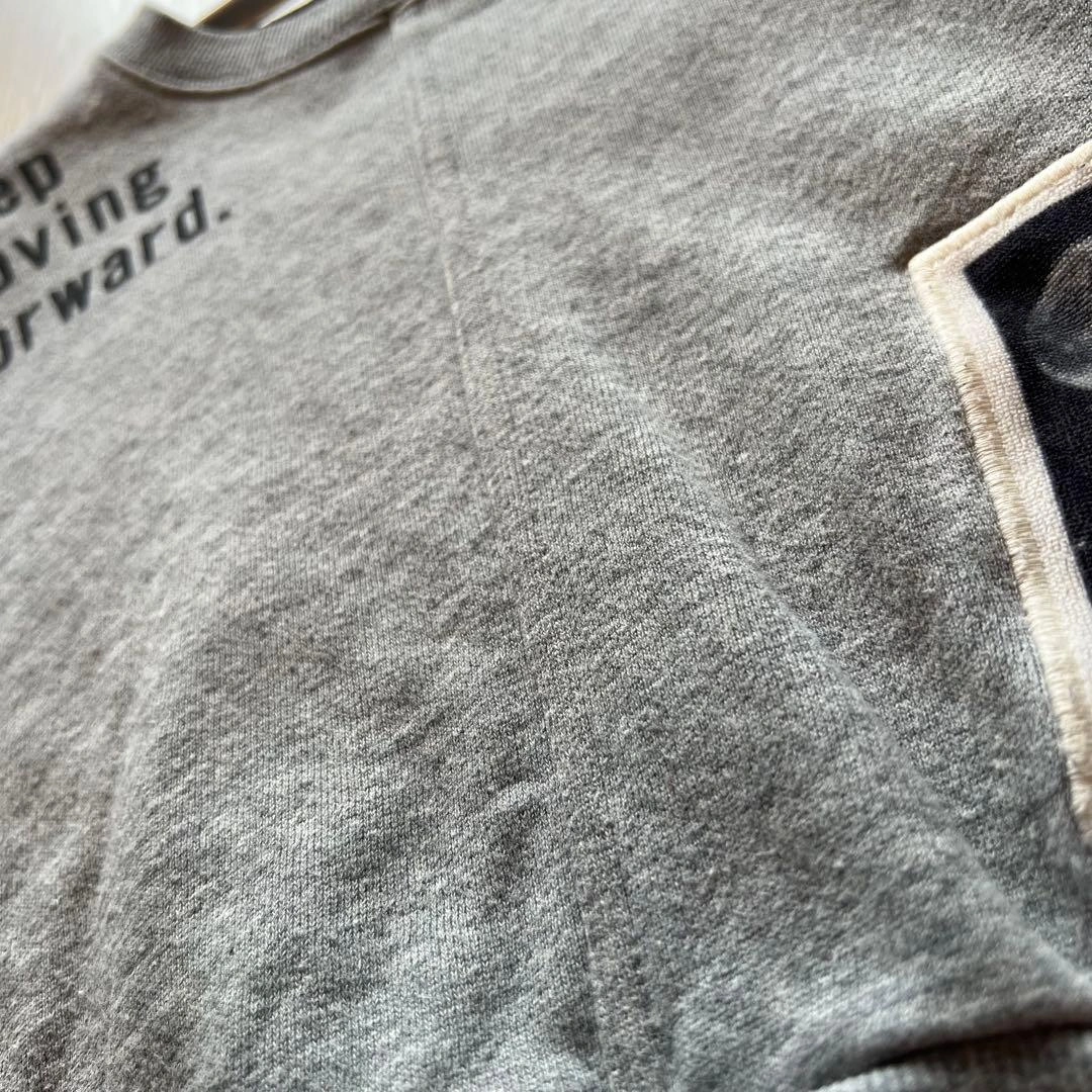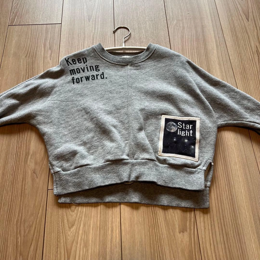 ブランシェスのメッセージプリントとフロントポケットが特徴のグレーのクロップドトレーナーです。 - 色: グレー - デザイン: メッセージプリント(Keep moving forward) - 袖口: リブ袖 - スタイル: クロップド丈 通常着用による多少の毛羽立ちがあります。 80、90㎝のお子様におすすめです。ご希望の方はお気軽にご連絡ください。