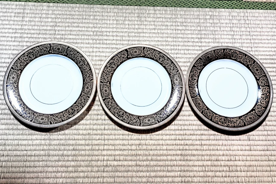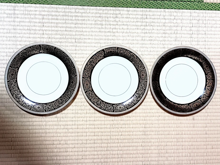 ノリタケプレート大皿3枚セットです。生産終了商品の為手に入りません ・色:白、黒、ゴールド ・柄:花柄 ・状態:新品 金細工プレート大皿3枚未使用経年保管品
