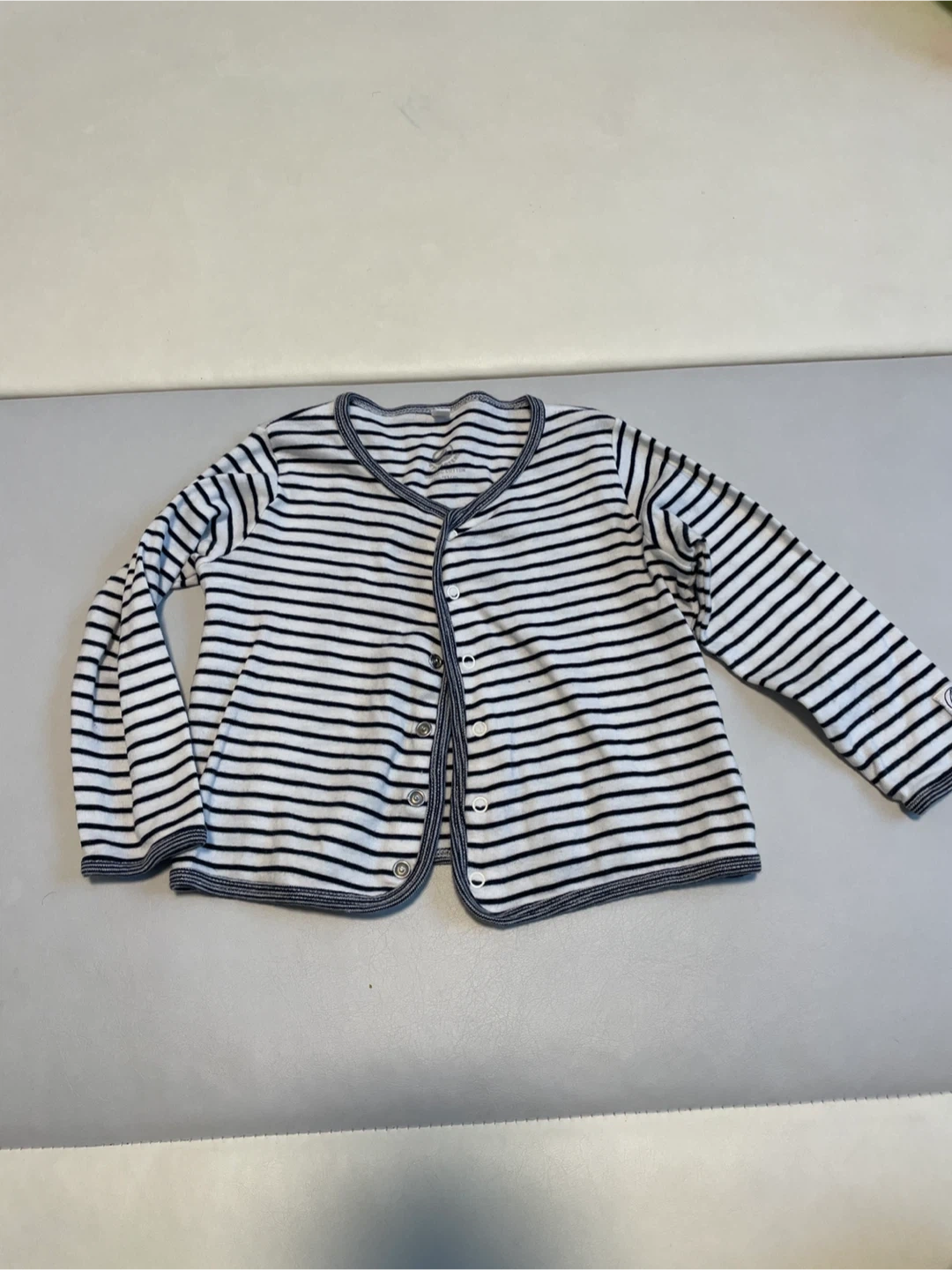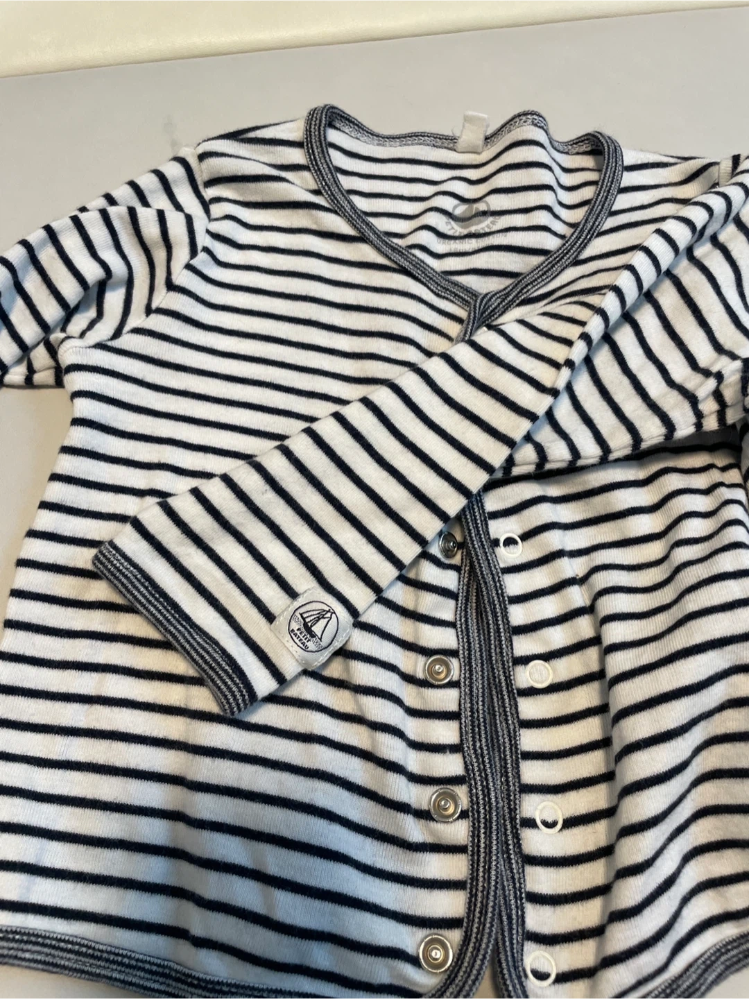 プチバトーのカーディガンです。 プチバトーはやや小さめのフィットするお作りで上質な生地がよく伸びるため、UNIQLO80相当かと思います。 ・ブランド:プチバトー ・サイズ:18m/81cm ・柄:ボーダー ・素材:オーガニックコットン 中古品であることご了承頂き、神経質な方はご遠慮ください。 受渡しは東急多摩川線全駅、東急東横線多摩川駅から上り下り5駅程度ご相談ください。 ご不明点があればお気軽にご連絡ください。