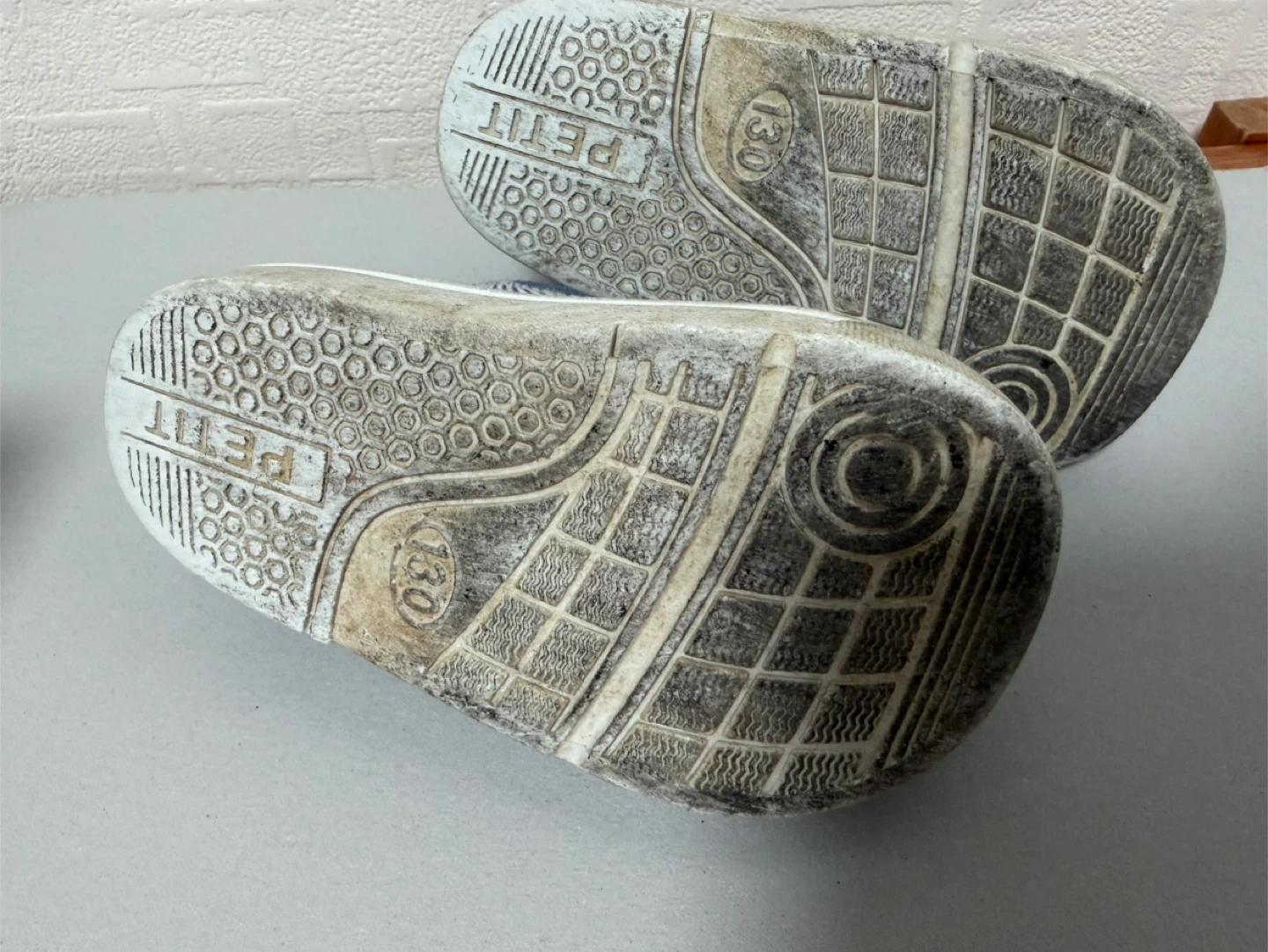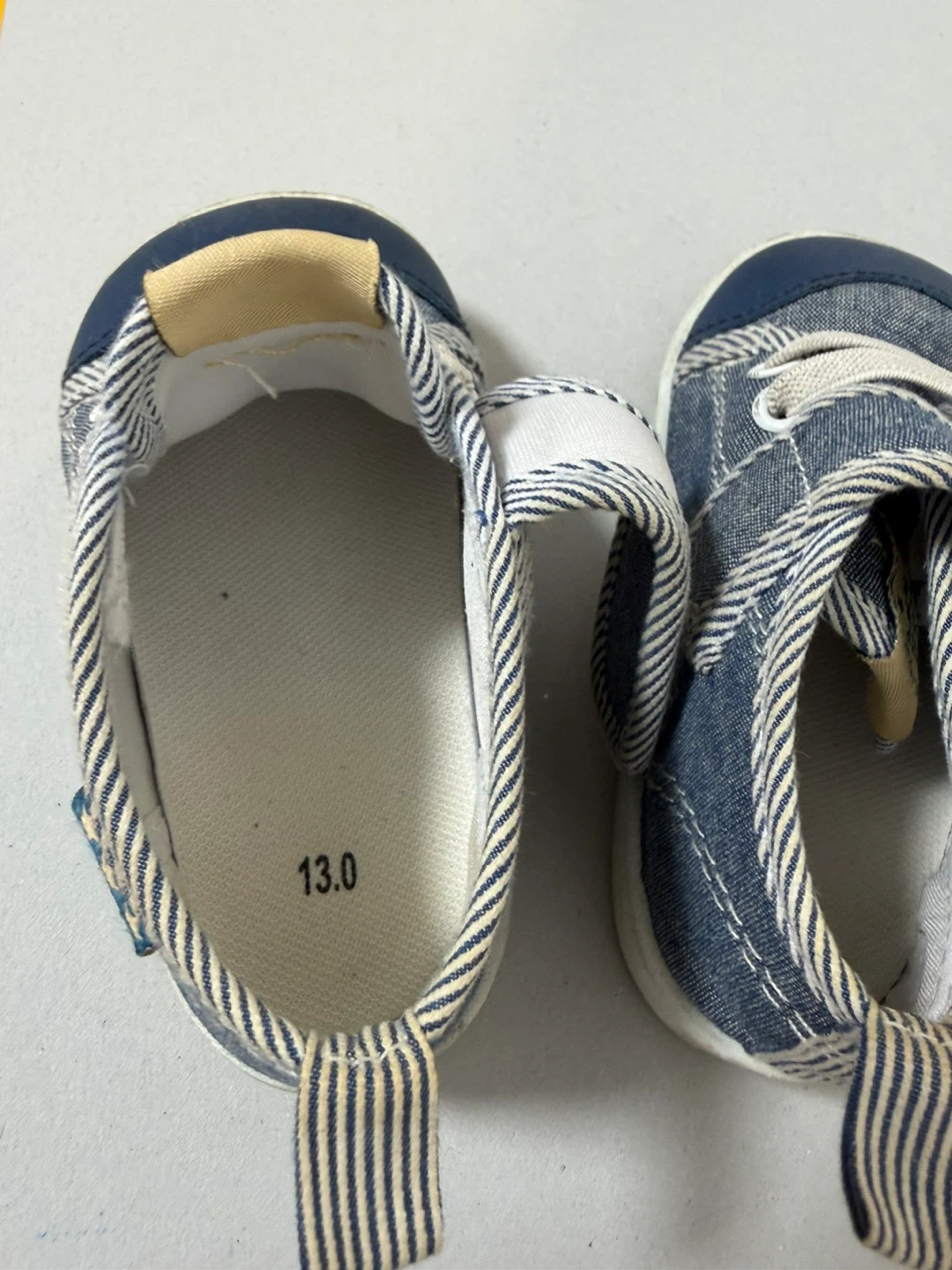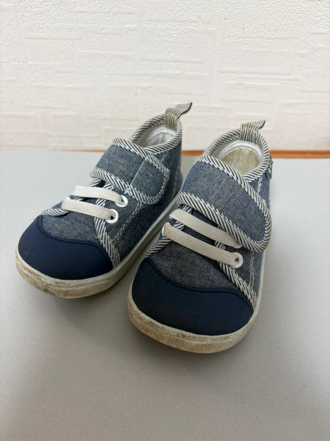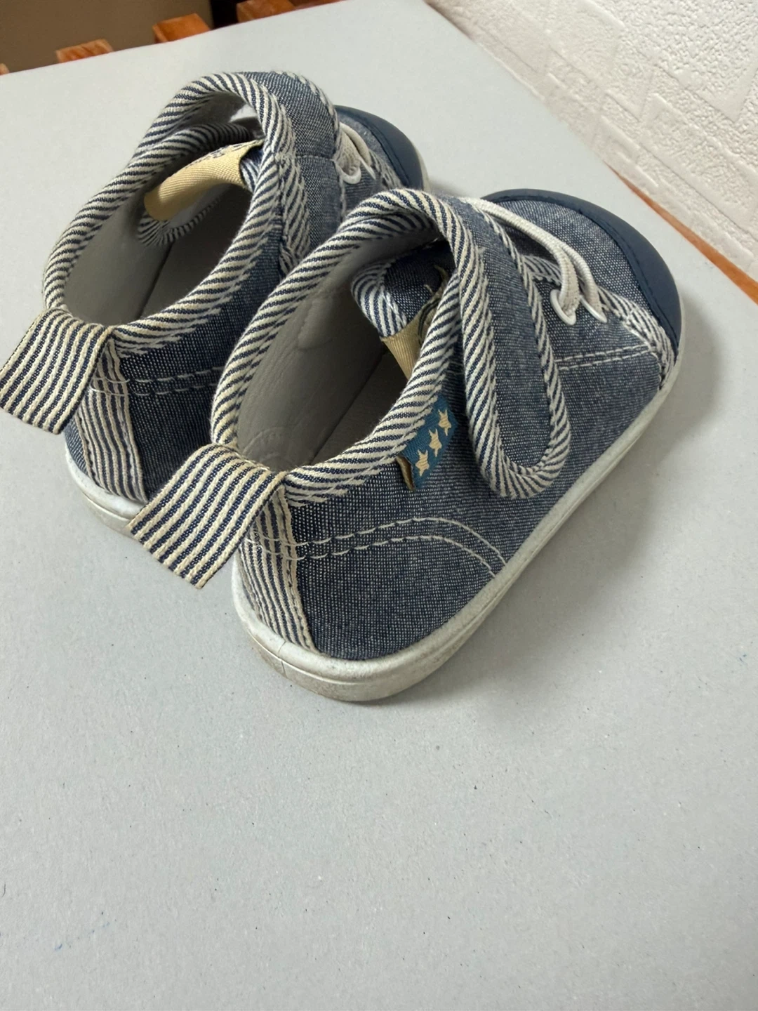 プチのスニーカーです。 ・サイズ:13cm ・色:ブルー系 ・マジックテープ付き ・使用感あり ・ソールに汚れあり ・箱無し 中古品であることご了承ください。 10回未満の使用回数です。 すぐにサイズアウトしてしまいました。 かかと部分は柔らかい作りです。