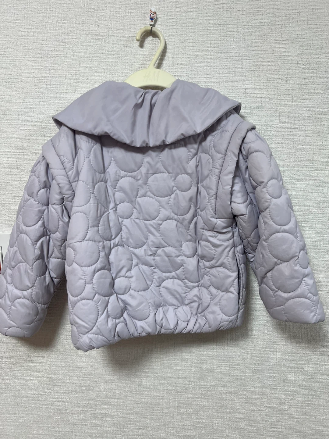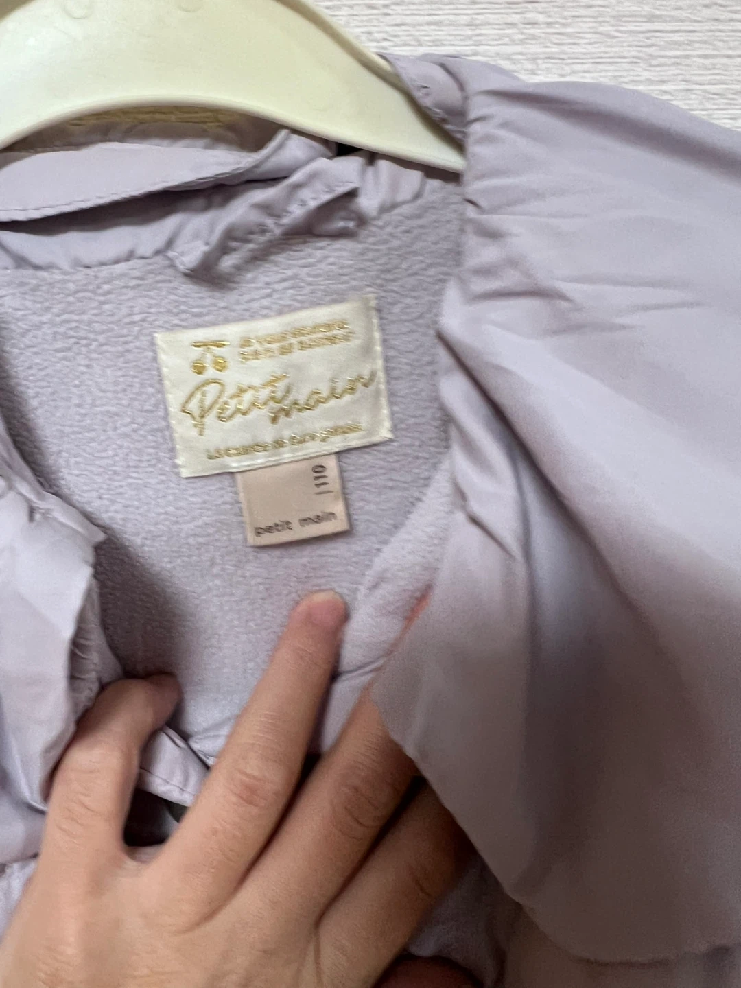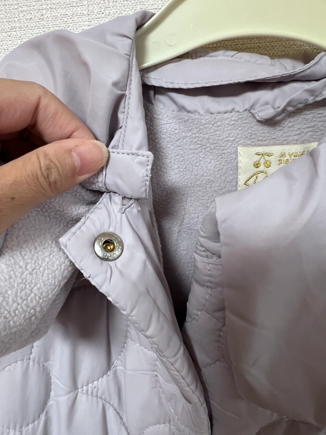 プティマインのアウターです 襟が取り外し可能🉑 【情報】 ブランド:プティマイン サイズ:110(2〜5才) 型番:9633310-39 カラー:薄紫 【状態】 使用感少なめ 袖に薄い汚れあり ご不明点があればお気軽にご連絡ください
