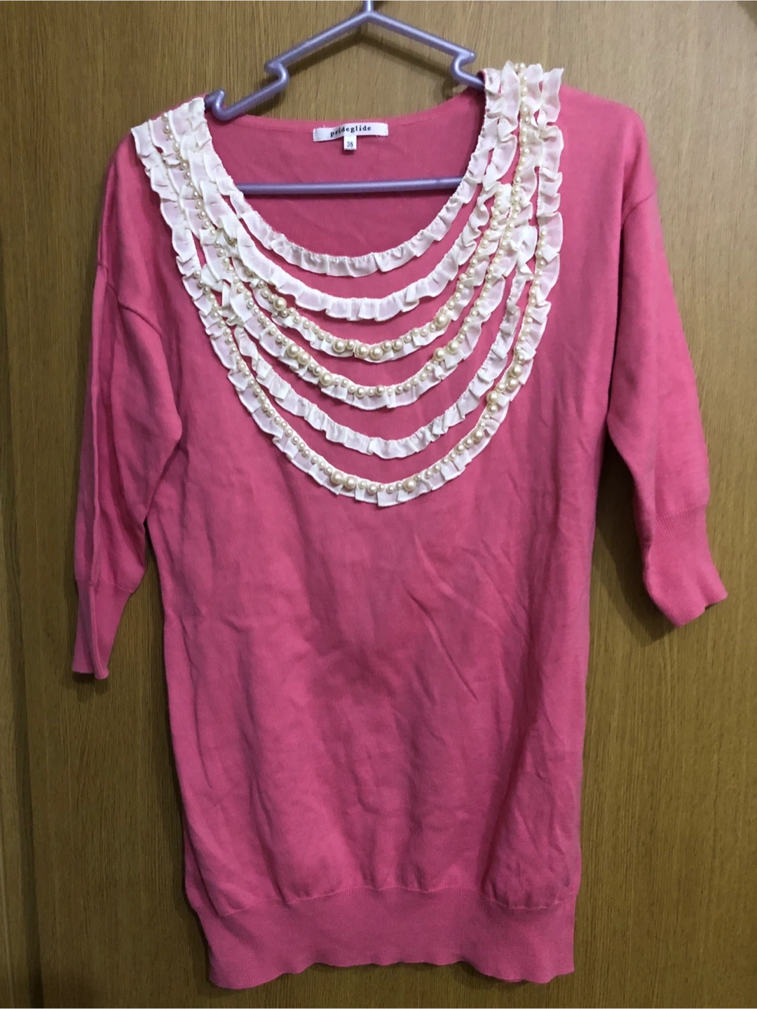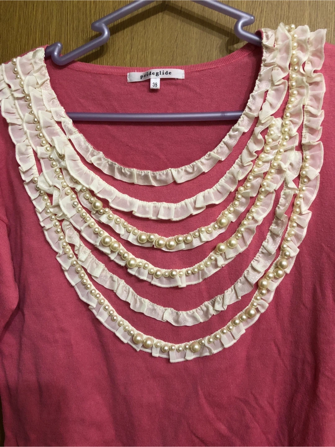 プライドグライドのトップスです。 ・色:ピンク ・サイズ:38 ・胸元のフリルとパールが特徴 ご不明点があればお気軽にお尋ねください。 着丈67cm 受け渡しは武蔵小杉駅、日吉駅、トレッサ横浜、アピタテラス可能です。