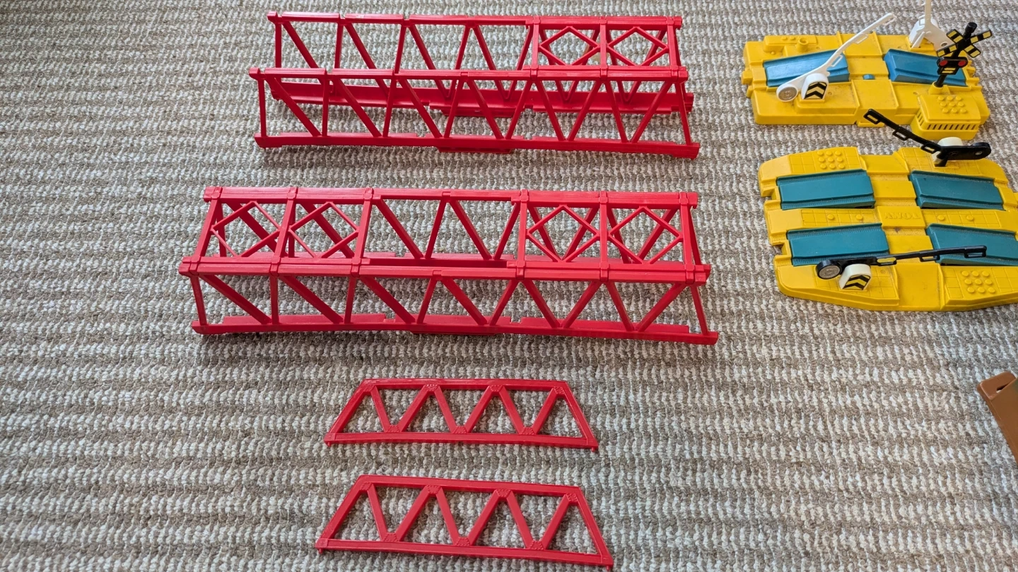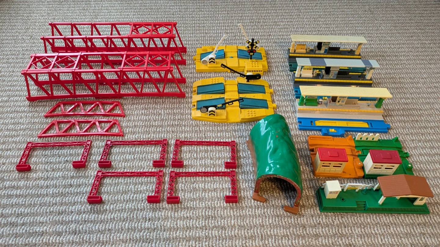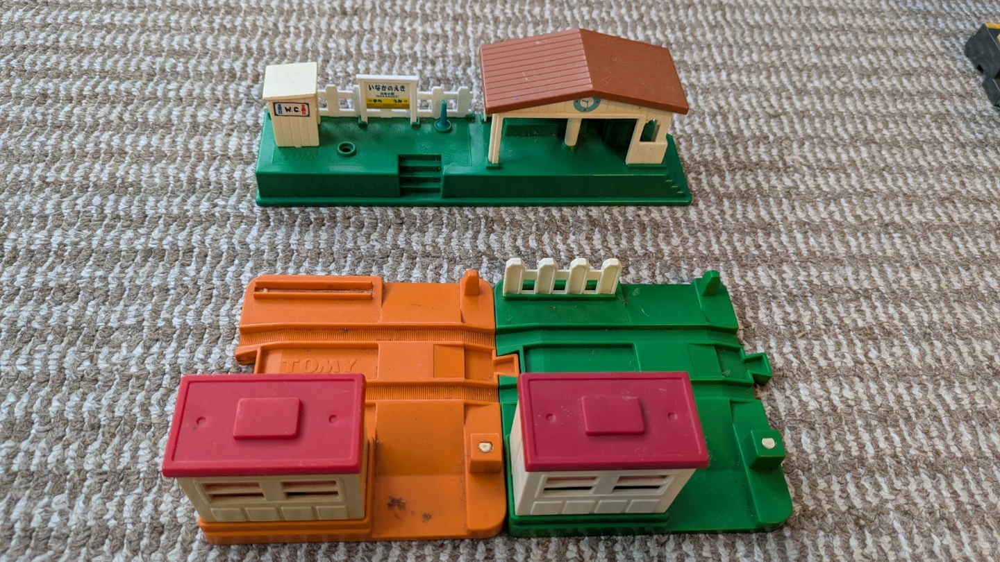 プラレールの情景部品まとめ売りです。 ・赤い橋脚、トンネル、駅、踏切 ・トンネルに割れがあります(画像参照)。 ・赤い橋の一部に屋根パーツが欠品しています(画像参照)。 ・赤い橋はテープ跡など有り いただきもので、自宅に保管しておりました。 汚れは歯ブラシなどで洗えば取れるかな?と思いますが、現状でのお渡しのため、お安く出品いたします。 また、日焼けなどでの変色もございます。 詳しくは画像をよくご確認ください。 年末年始や休日など、お休みの日にゆっくり とプラレールを楽しむのはいかがですか(^^) 中古品であることをご了承ください。